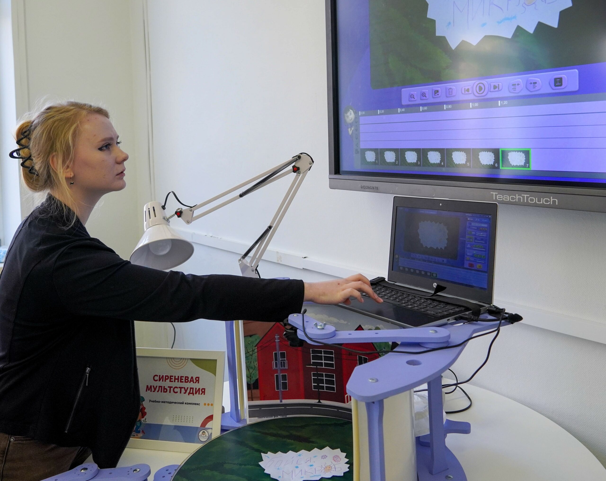 «Сиреневая мультстудия» — это профессиональный мультстанок, разработанный для создания анимационных фильмов с непосредственным участием детей. В отличие от традиционных творческих занятий, работа в мультстудии представляет собой комплексный процесс, объединяющий несколько видов деятельности: придумывание сценария, создание персонажей и декораций, покадровую съёмку, озвучивание и монтаж. Каждый ребенок может попробовать себя в роли сценариста, художника-мультипликатора, оператора или актера озвучивания, что способствует раскрытию его индивидуальных способностей и повышению самооценки.