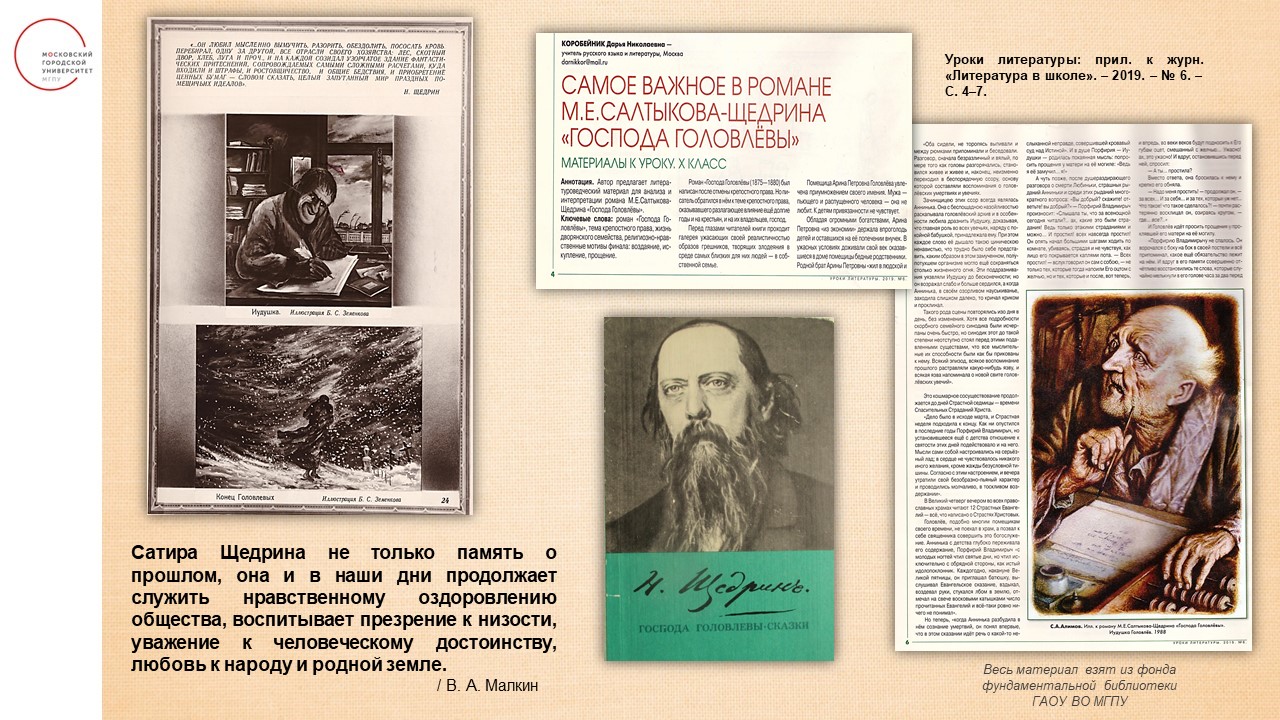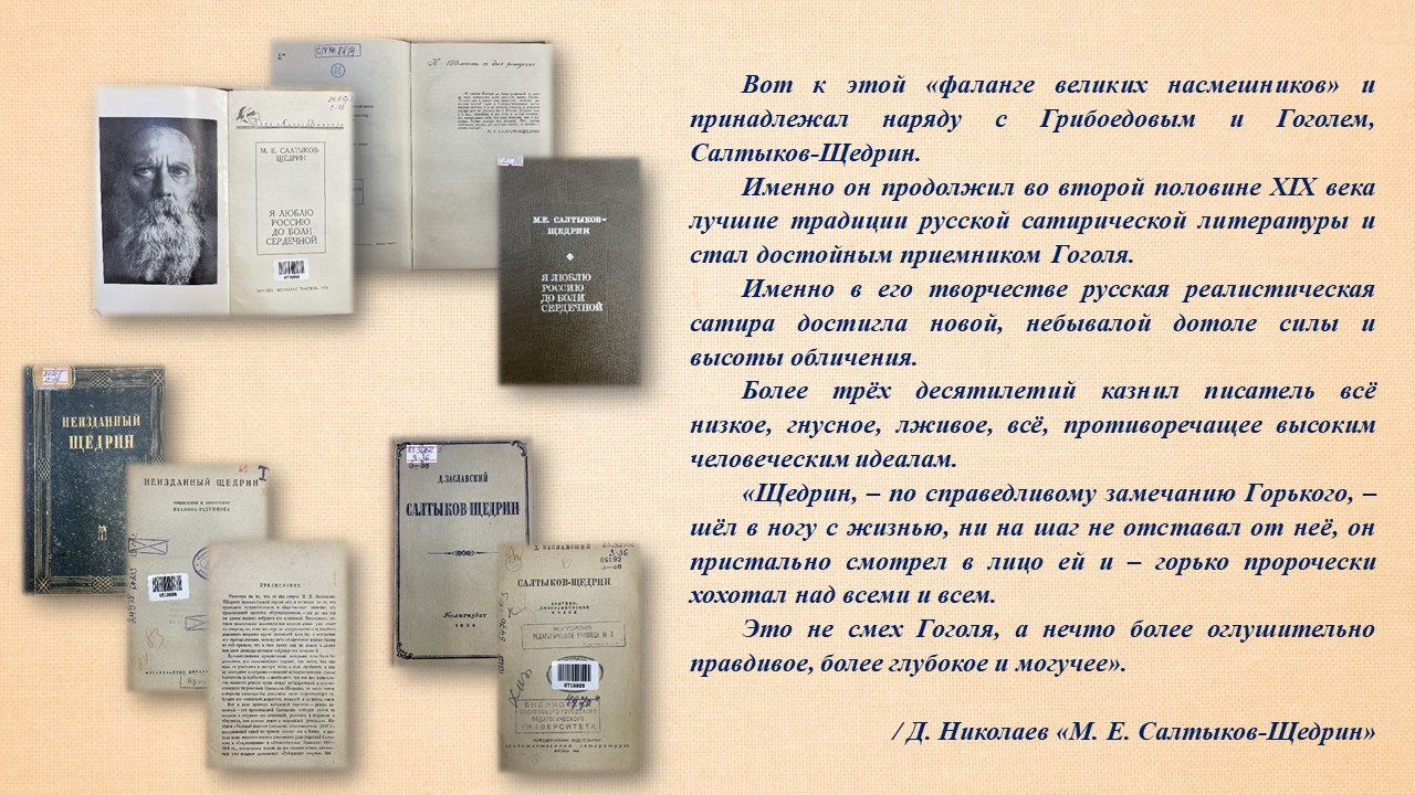 Сотрудники отделения обслуживания в г. Зеленоград подготовили виртуальную выставку «М.Салтыков-Щедрин. Вечные пороки в зеркале писателя. 200 лет спустя».
