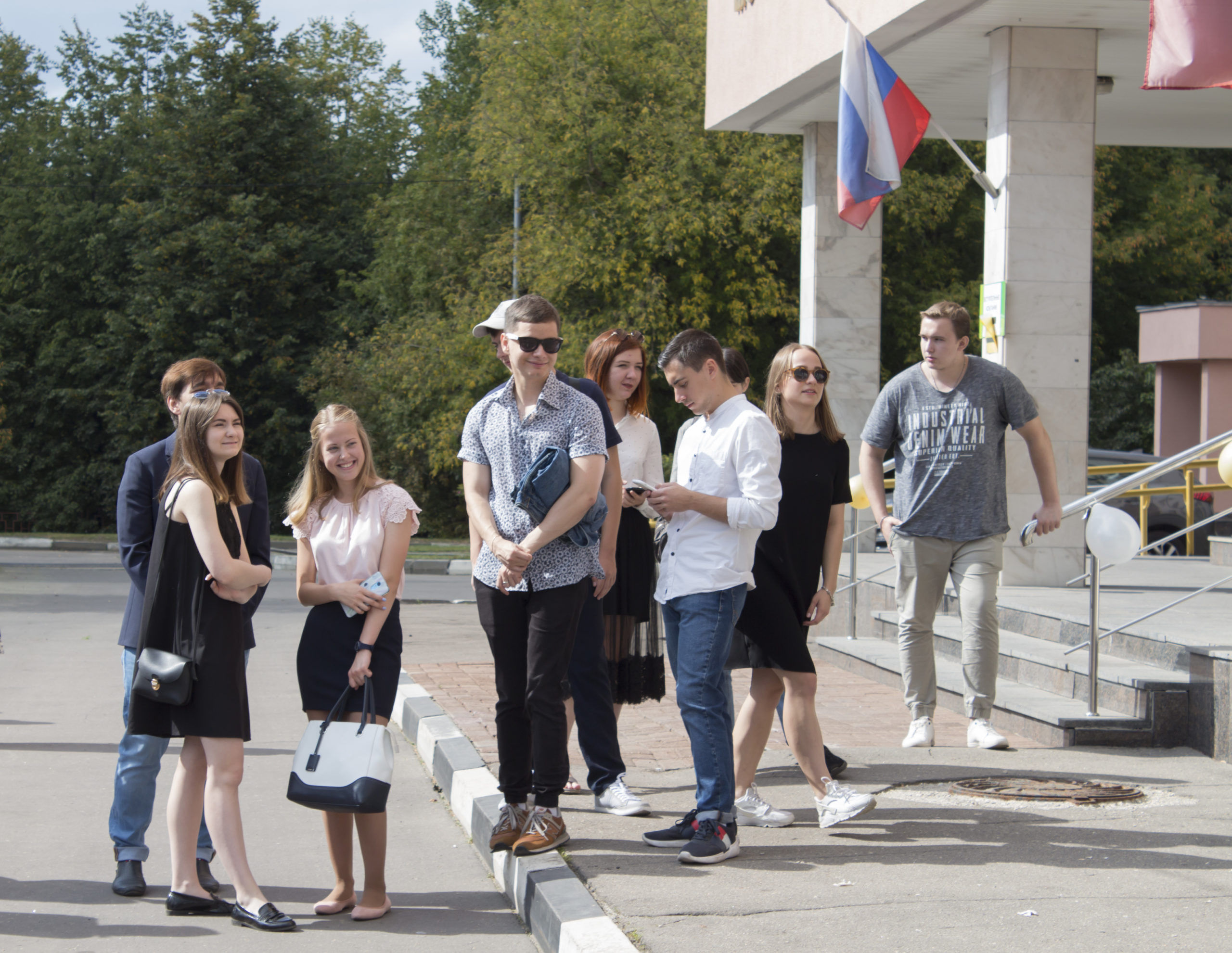 Летняя погода пришла в Москву лишь в конце августа, однако это опоздание позволило провести торжественную часть прямо на крыльце института.