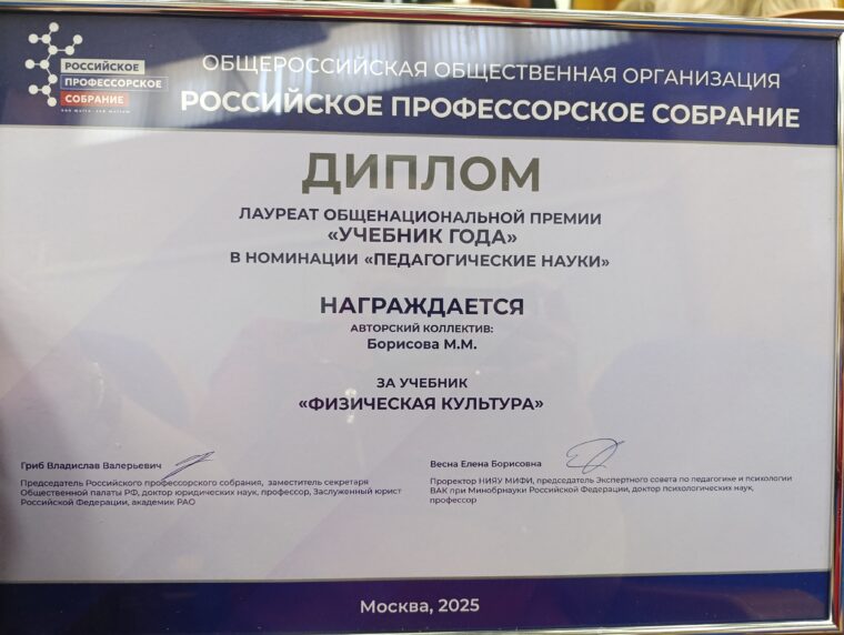 16 апреля 2025 года в Российской академии образования состоялось награждение лауреатов Общенациональной премии Российского профессорского собрания «Учебник года».