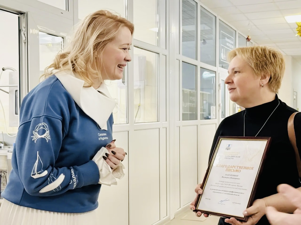 Символичным завершением визита стало вручение Виктории Мануйловой благодарственного письма от министра образования Сахалинской области. Награда была присуждена за значительный вклад в развитие инклюзивного среднего профессионального образования на территории региона. Этот жест не только отметил личные заслуги профессора, но и подчеркнул важность экспертного партнёрства для продвижения инклюзивных инициатив.