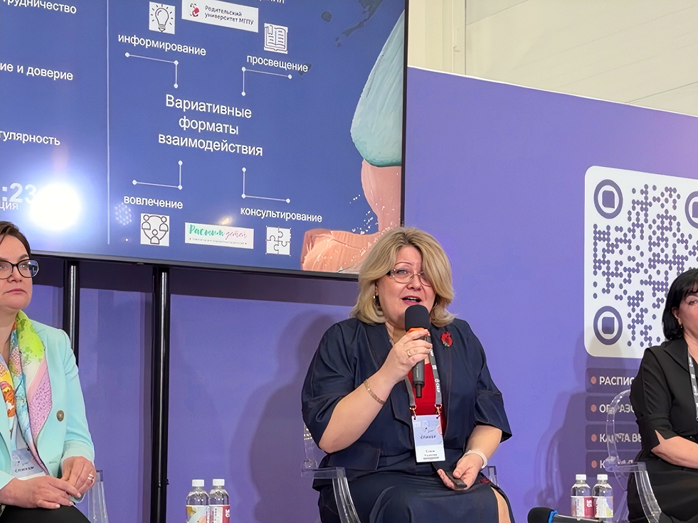 Эксперты ИНО и ИПКР стали участниками одной сессии «Современные форматы взаимодействия с родителями: от информирования к со-творчеству»: модератором выступила Наталия Шевелёва, заведующий кафедрой педагогических технологий непрерывного образования ИНО МГПУ, Елена Ушакова — стала спикером сессии. Участники обсудили, как меняются форматы коммуникации между педагогом и родителями: от традиционных моделей к диалогу и полноценному партнерству. Елена Ушакова рассказала о портрете современного родителя, обратила внимание на его занятость и при этом вовлеченность в воспитание детей. Среди средств, которые реально могут помочь в трудном деле воспитания, она назвала «Родительский университет МГПУ» — экспертную платформу, где родители могут получить ответы на любые вопросы, связанные с детьми.