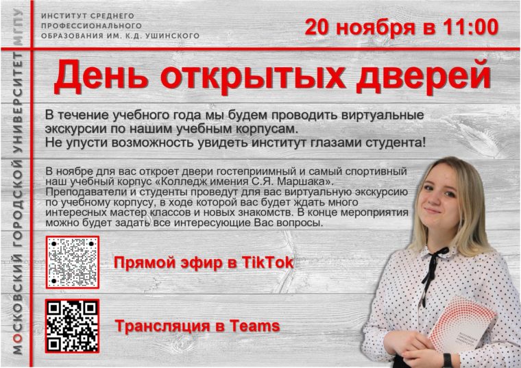 ИСПО имени К.Д. Ушинского приглашает вас в течение года познакомиться с учебными корпусами. В ноябре для вас откроет двери гостеприимный и самый спортивный наш учебный корпус «Колледж имения С.Я. Маршака». Преподаватели и студенты проведут для вас виртуальную экскурсию по учебному корпусу, в ходе которой вас будет ждать много интересных мастер классов и новых знакомств. В конце мероприятия можно будет задать все интересующие Вас вопросы.