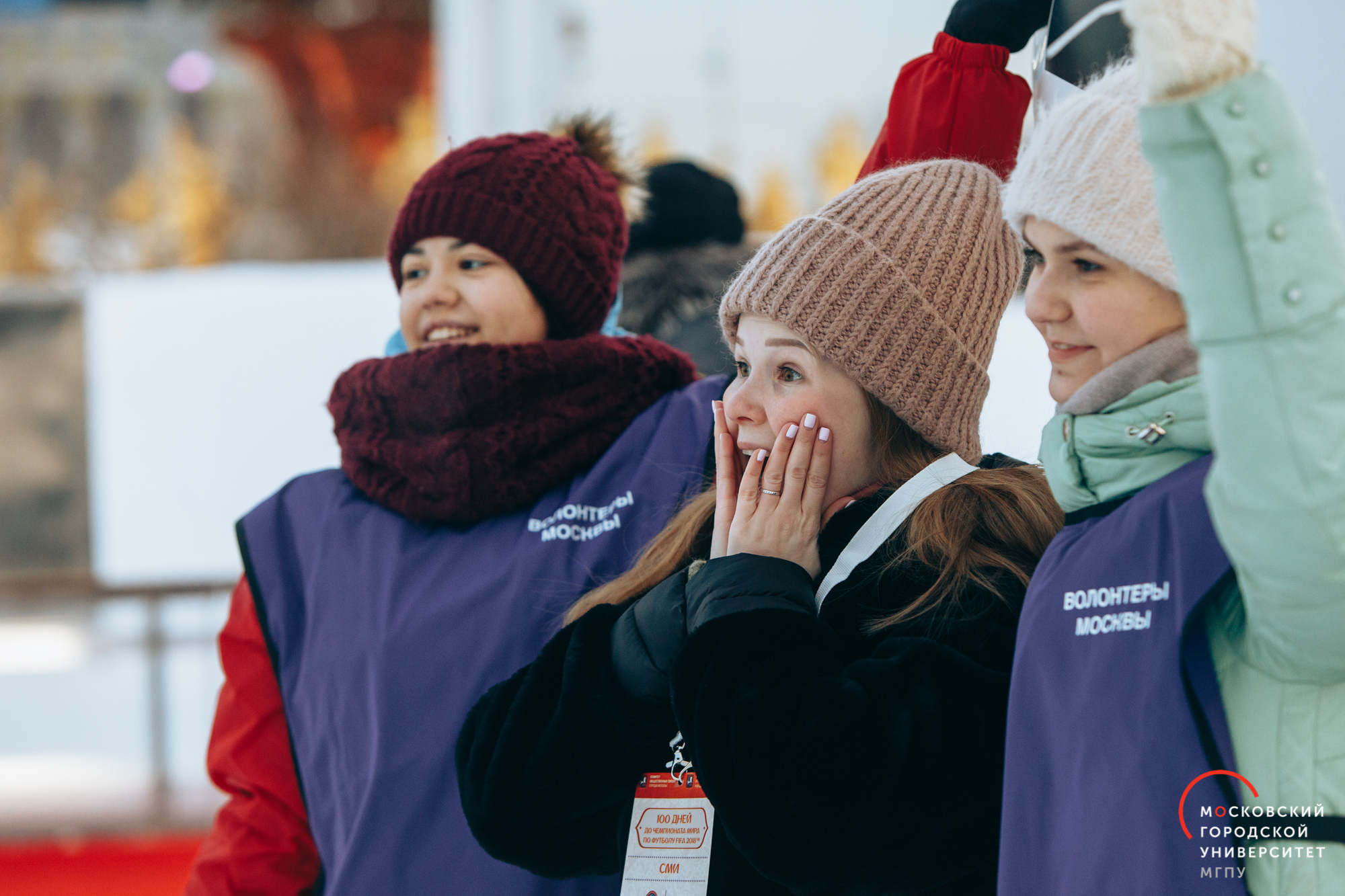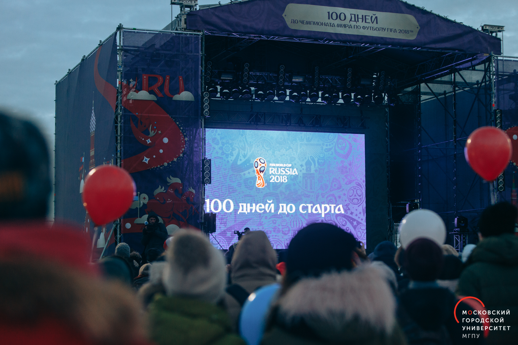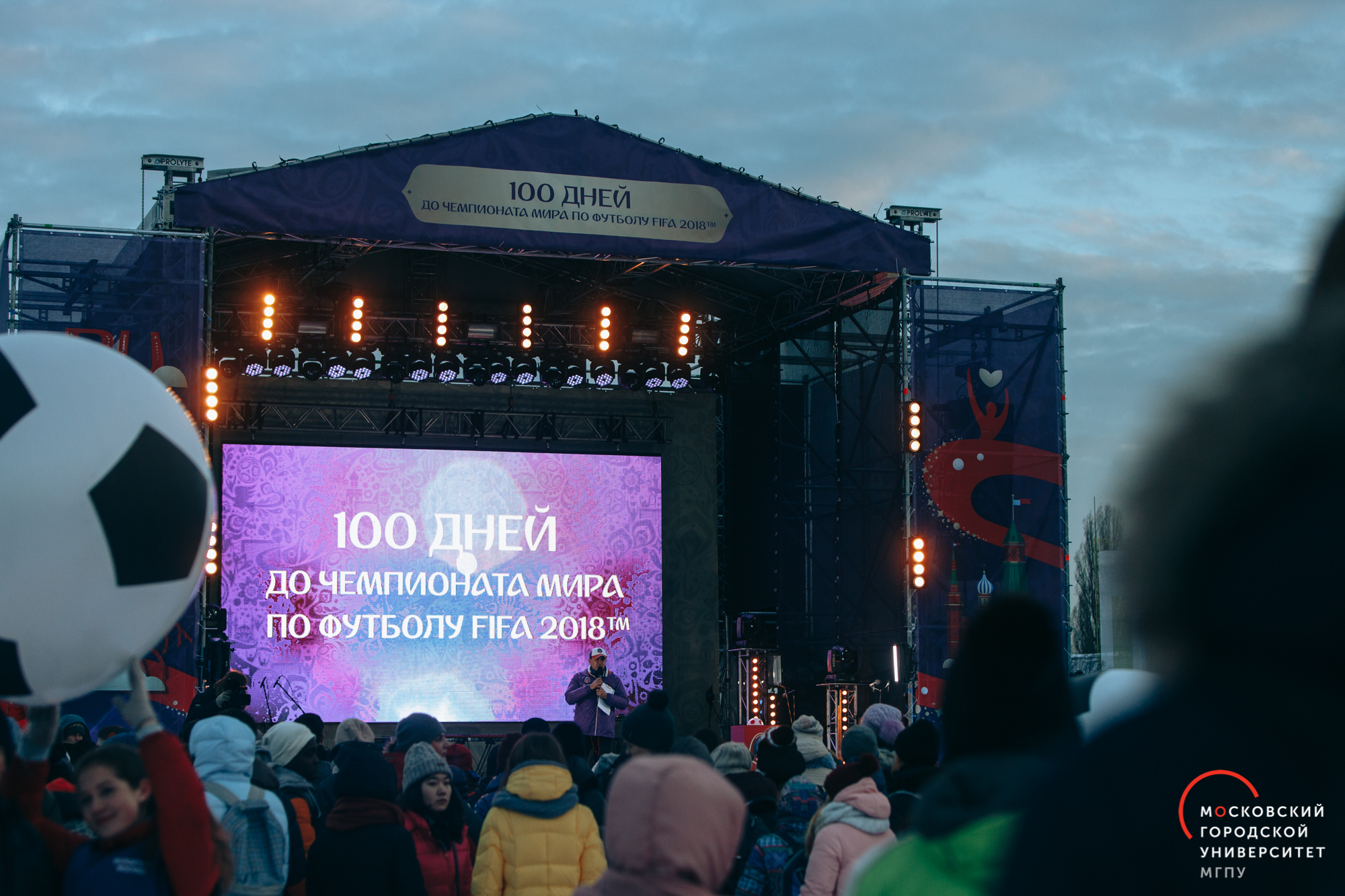 6 марта 2018 года на территории открытого катка ВДНХ Москва отпраздновала 100 дней до старта Чемпионата мира по футболу FIFA 2018 в России. К участию в мероприятии были приглашены 6000 городских волонтеров столицы, которые прошли отбор и начали подготовку к мировому первенству по футболу. В их числе 300 студентов Московского городского педагогического университета.