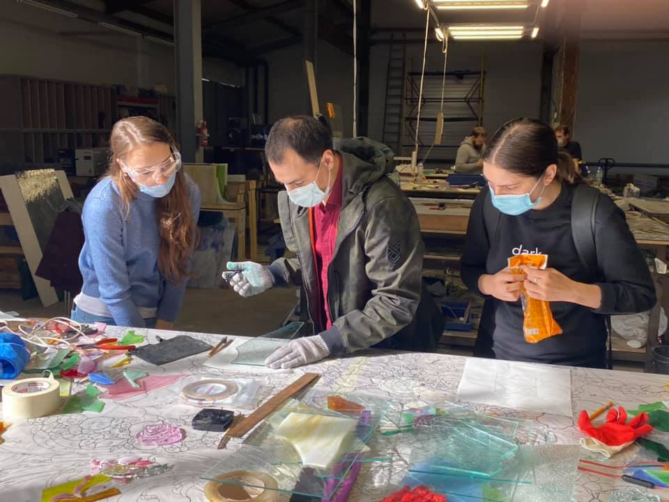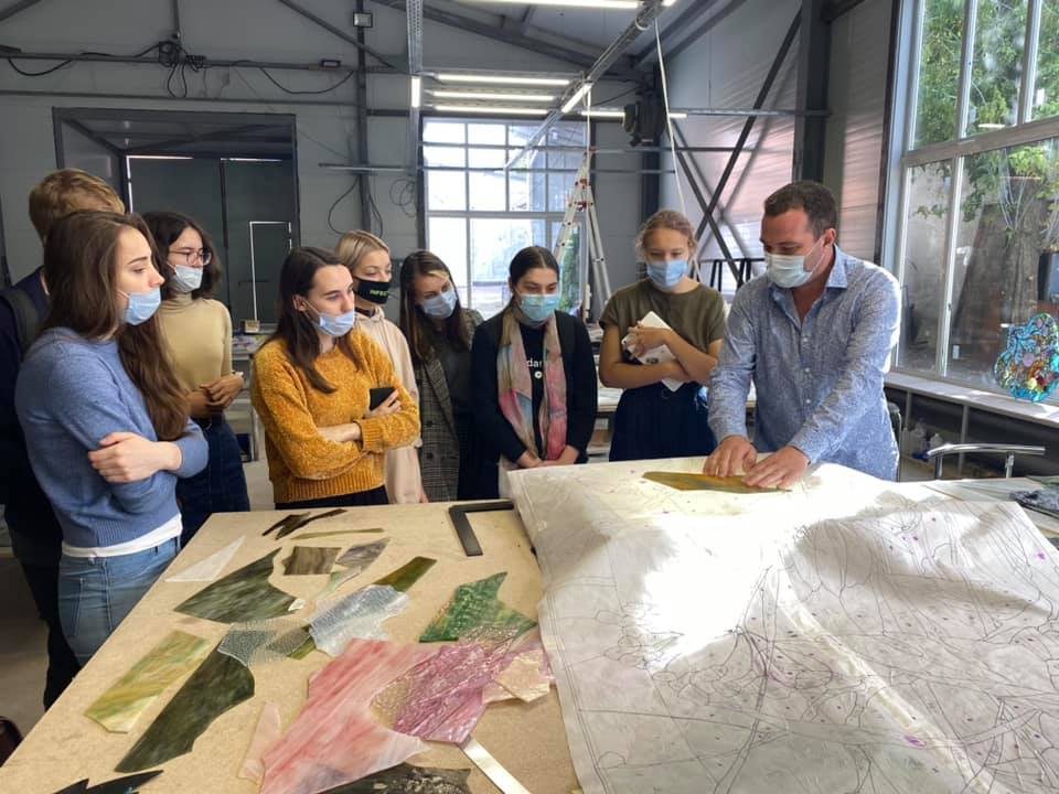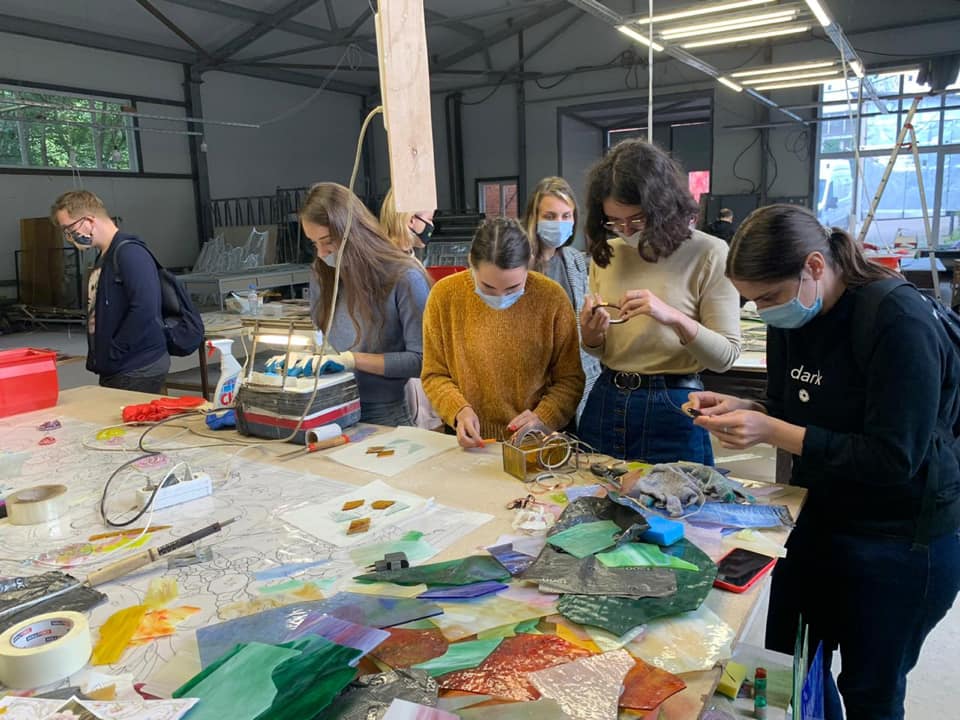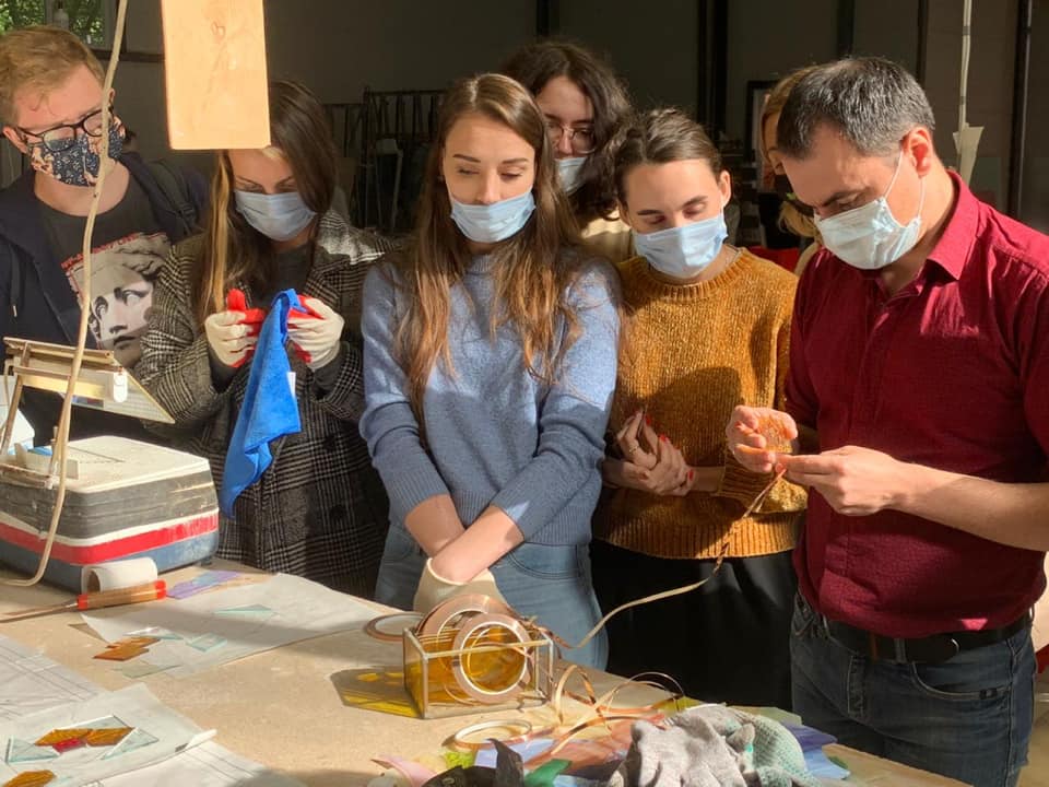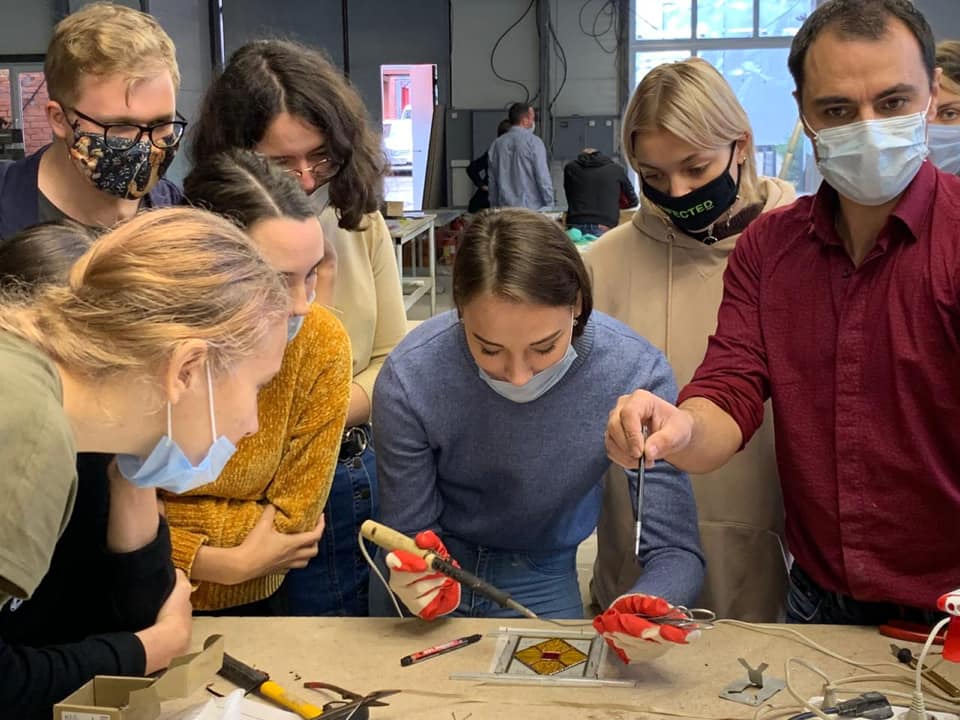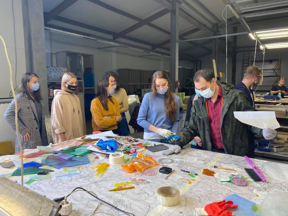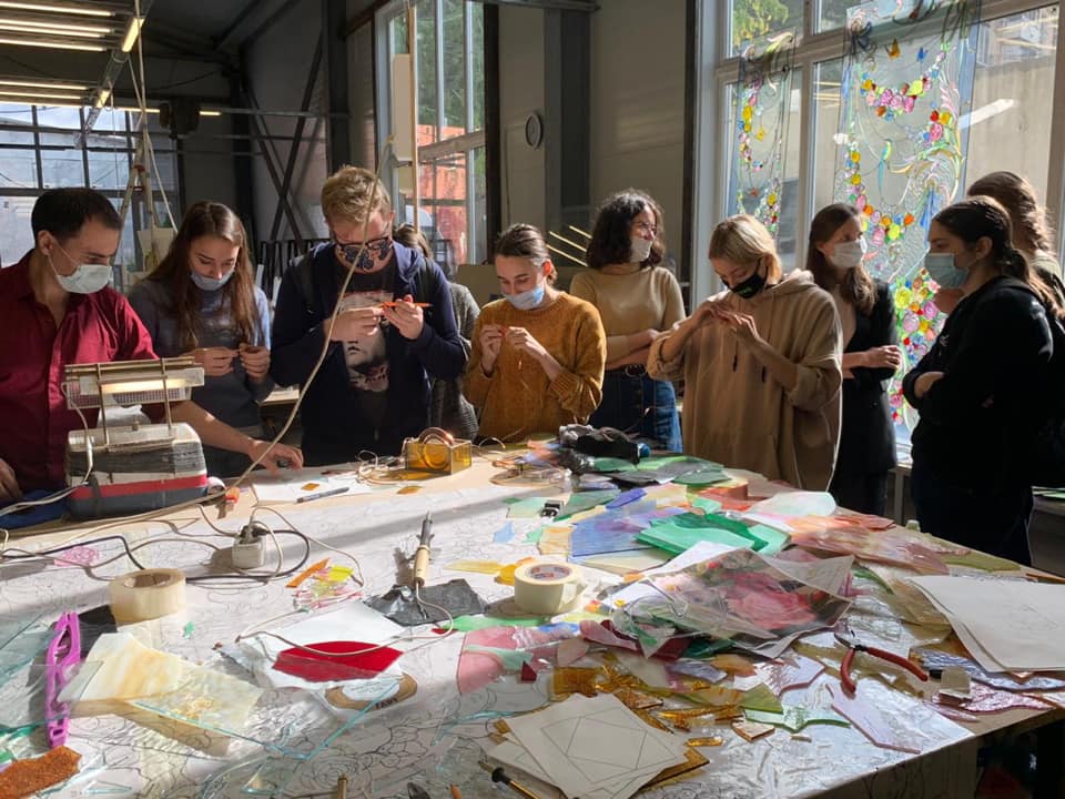 14 сентября 2020 г. — студенты 4 курса группы «Арт-технологии в декоративно-прикладном искусстве» на мастер-классе в «Студии витража Светланы Михайловой»
