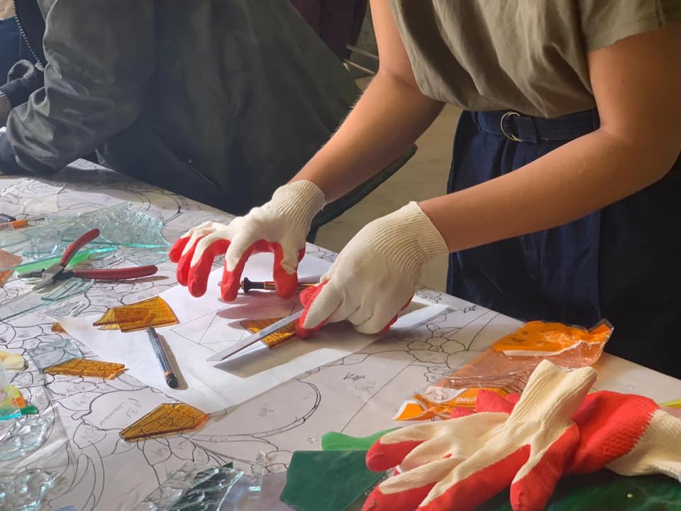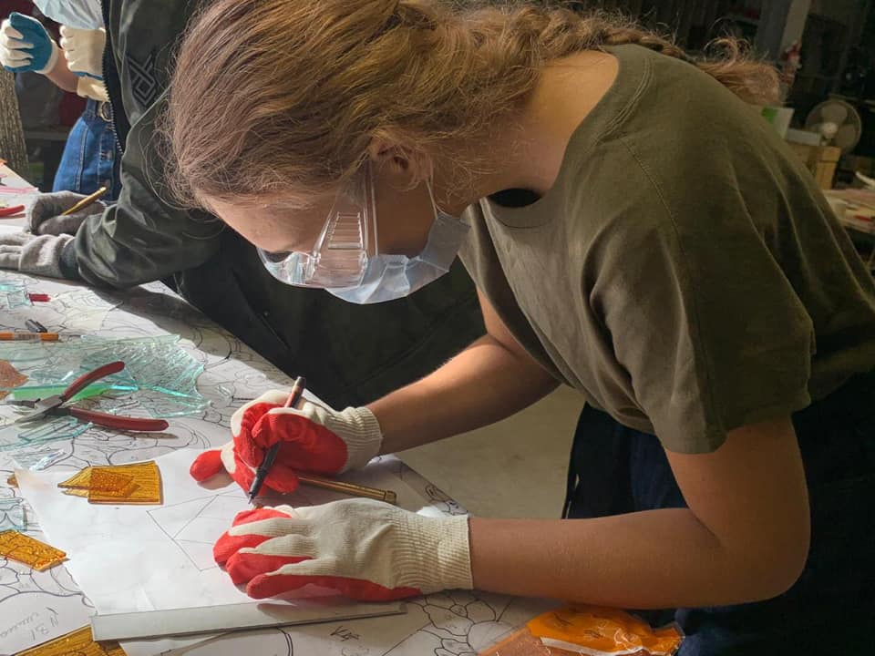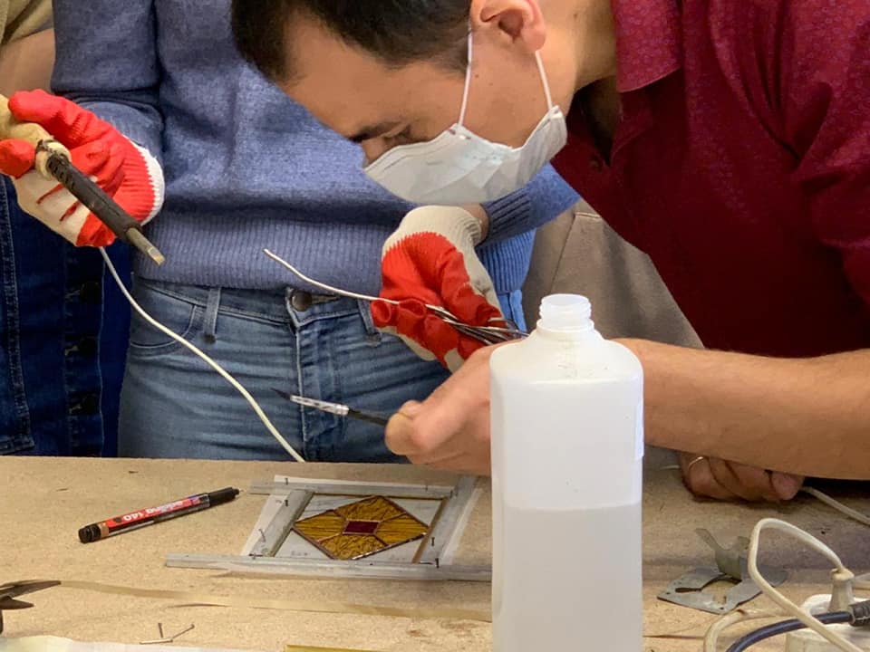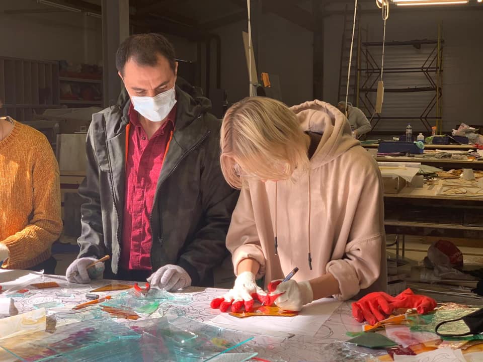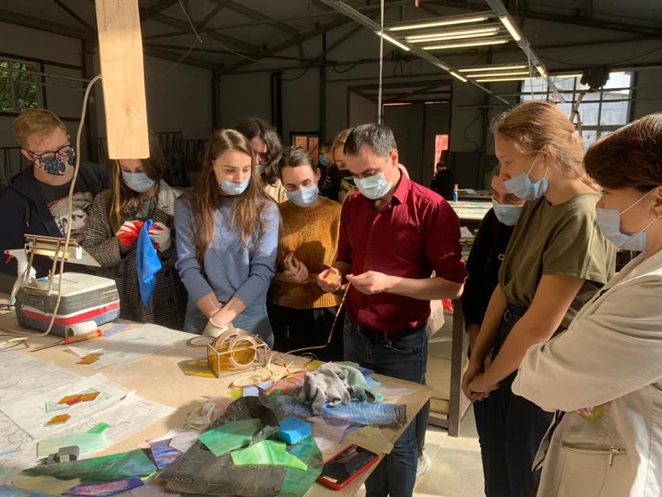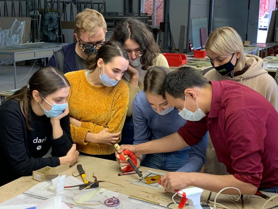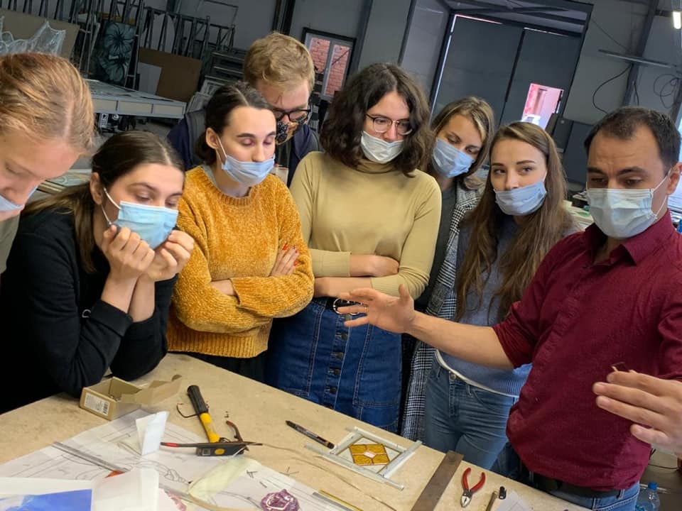 14 сентября 2020 г. — студенты 4 курса группы «Арт-технологии в декоративно-прикладном искусстве» на мастер-классе в «Студии витража Светланы Михайловой»