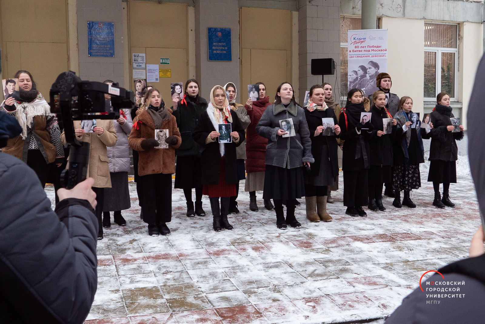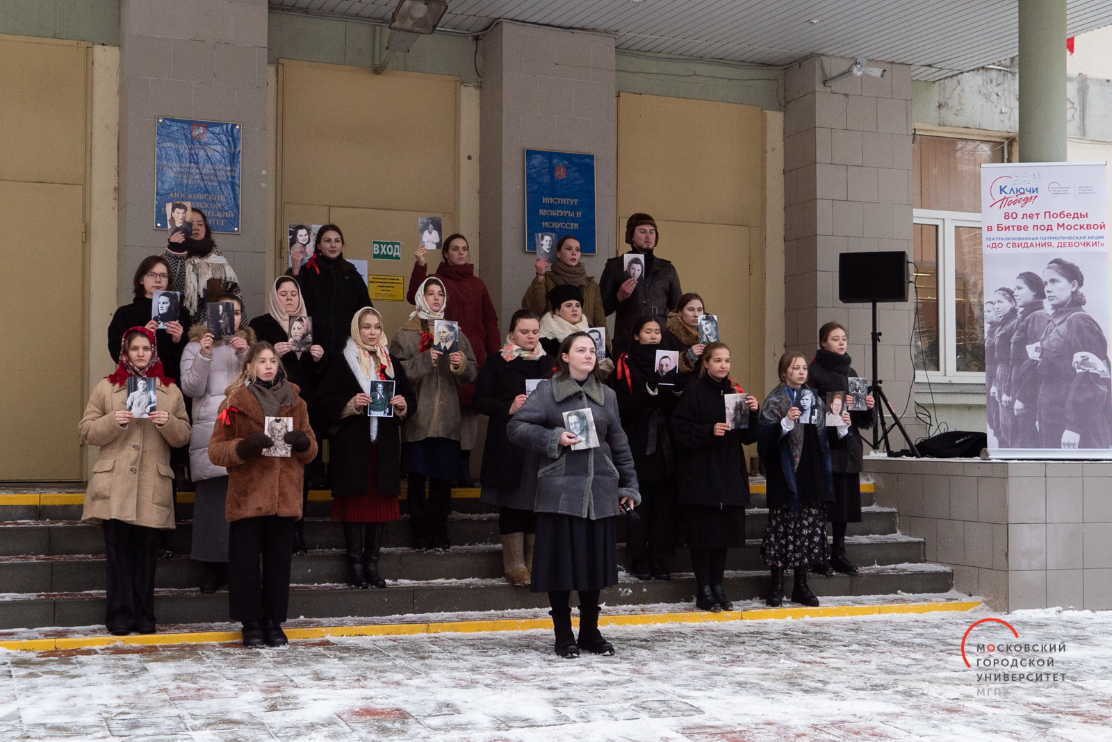 Театрализованная Патриотическая Акция «До свидания, девочки!» в Институте культуры и искусств МГПУ на ул. Марии Ульяновой, д. 21 в рамках патриотической программы-конкурса «Ключи Победы», включающей мероприятия для аудитории разного возраста, от молодежи до ветеранов, и к 80-летию Победы Советского народа в Великой Отечественной войне 1941−1945 гг.
