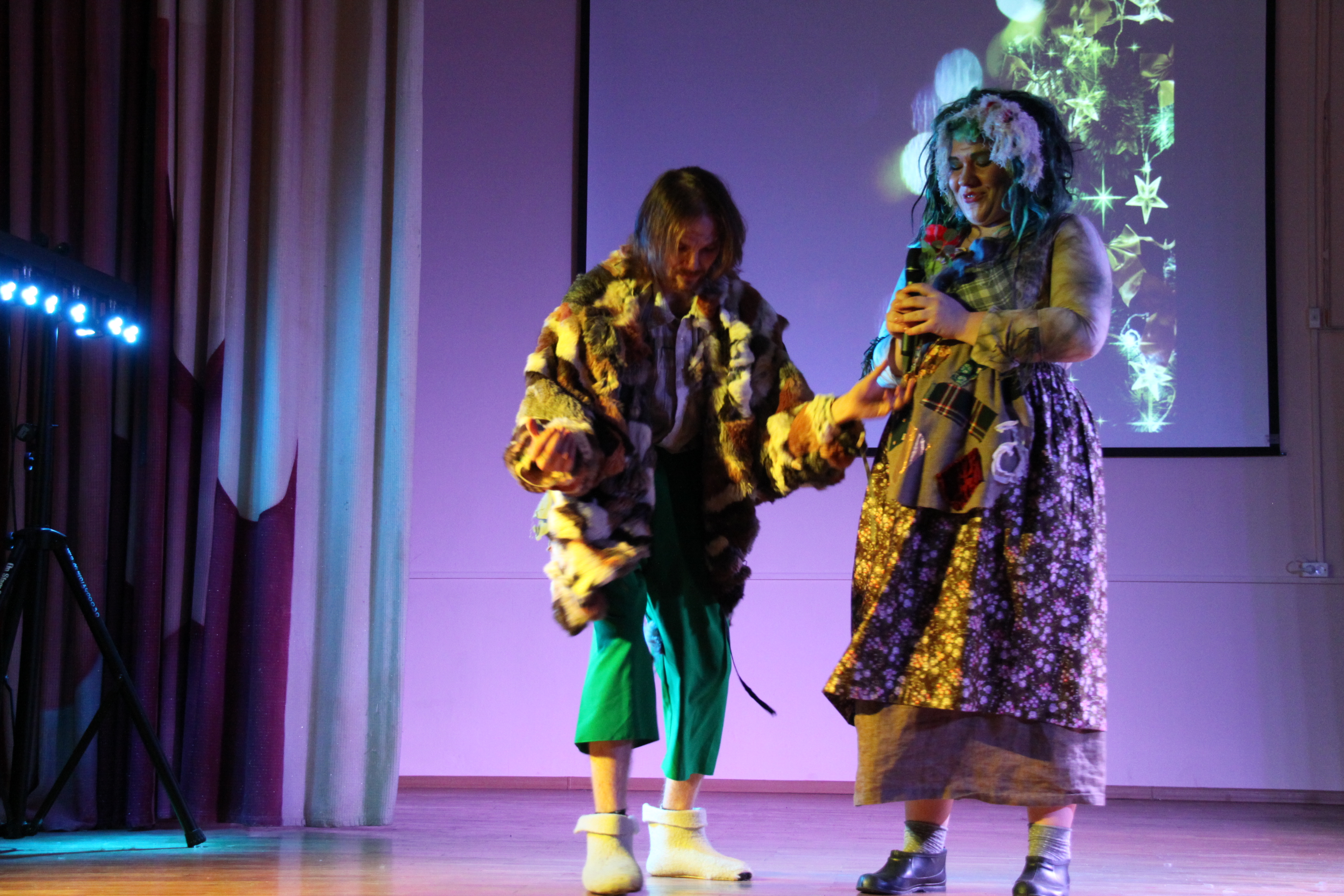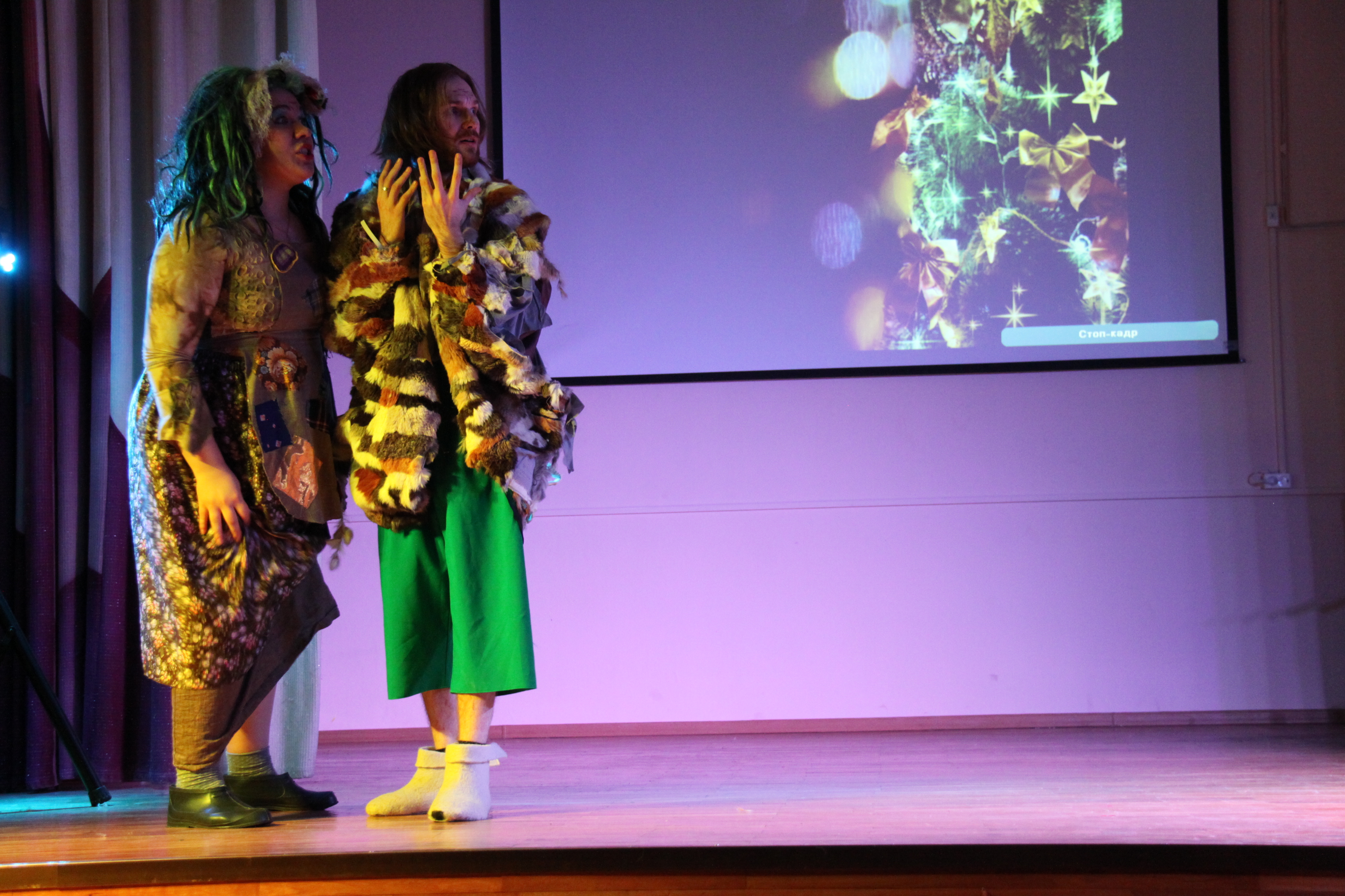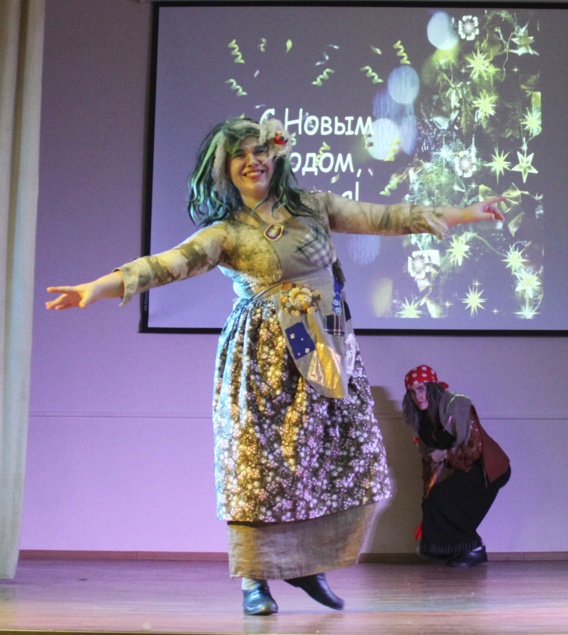 Веселая новогодняя история — трогательная история любви сказочных персонажей Бабы Яги и Лешего, счастью которых мешала интриганка Кикимора Болотная