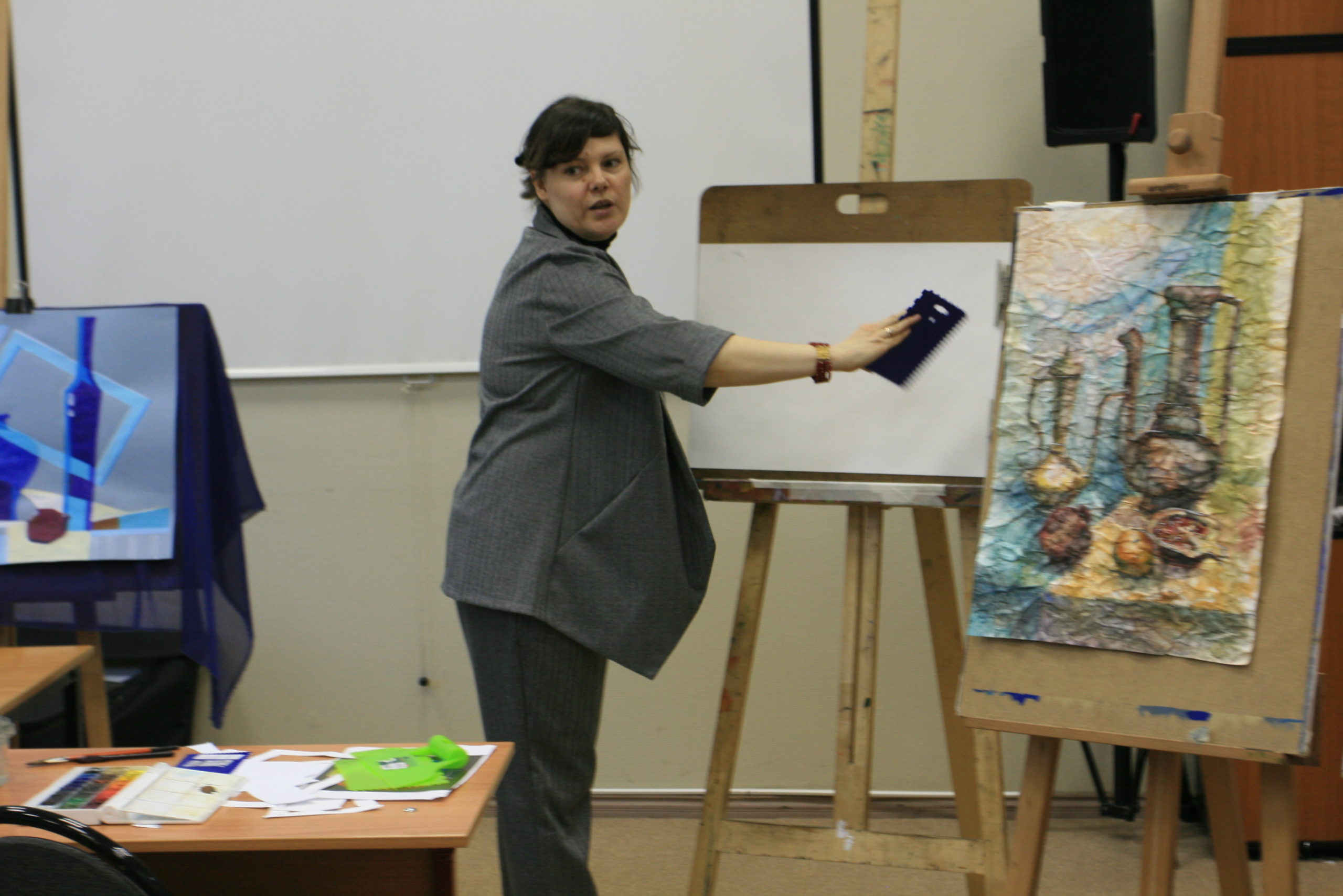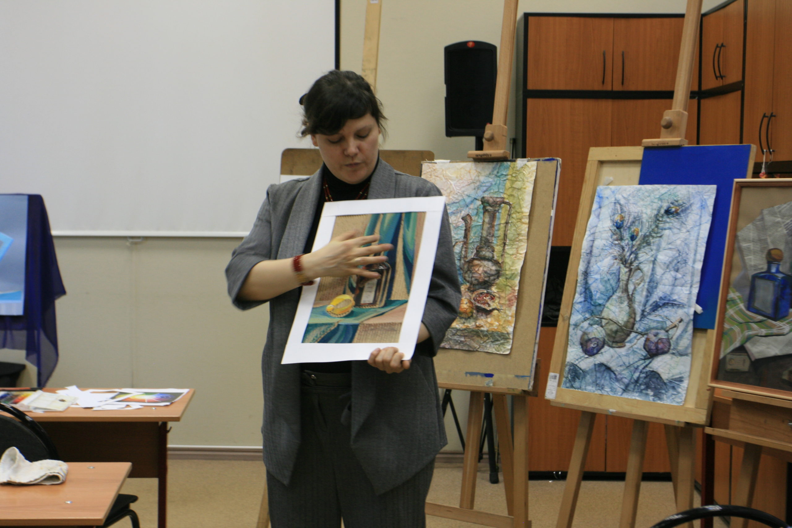 27 апреля 2019 г. в корпусе ИКИ МГПУ на Дмитровском шоссе доцент кафедры живописи и композиции Мария Ноздрачёва провела мастер-класс по нетрадиционным техникам создания натюрморта. Больше фотографий доступны по ссылке