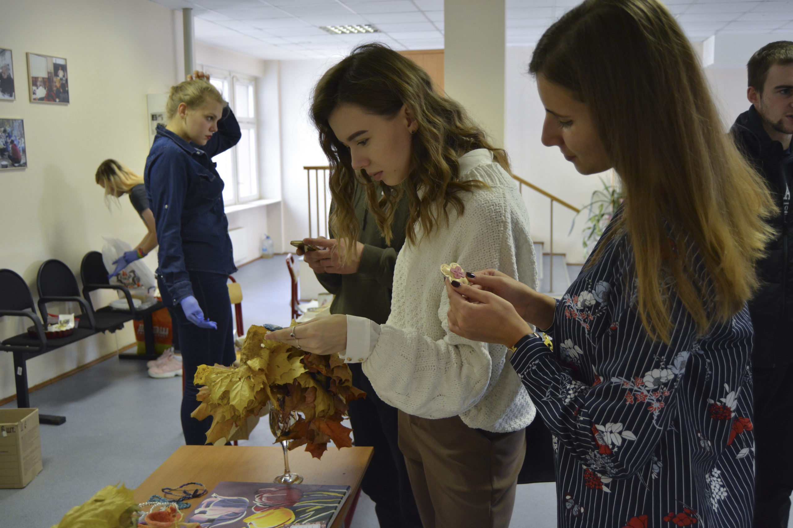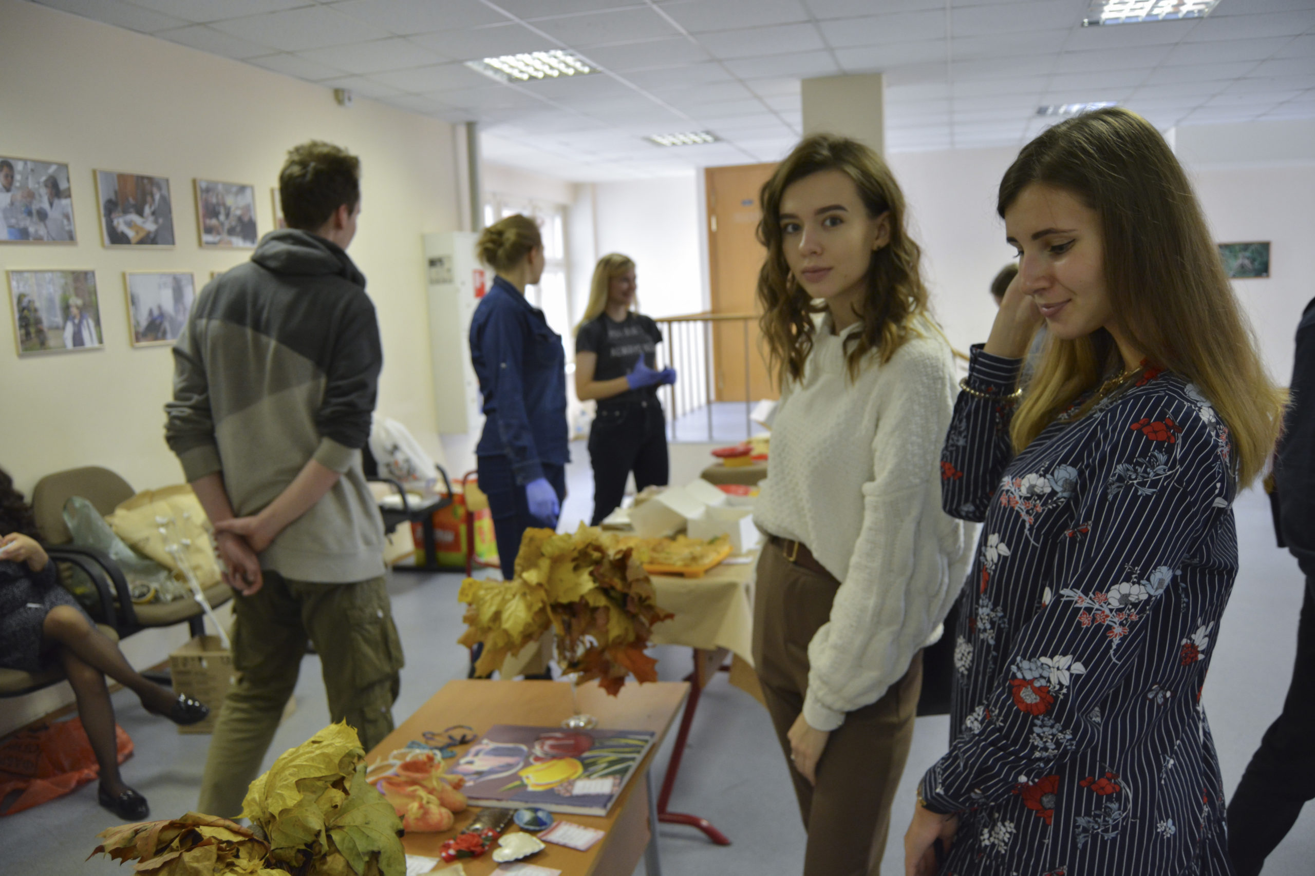 Чуть ранее на большой перемене состоялась благотворительная ярмарка «Уютная осень», приуроченная ко Дню пожилых людей. Все желающие могли приобрести еду, книги, посмотреть на выступления студентов. Вырученные средства пойдут на покупку подарочных наборов и в благотворительный фонд.