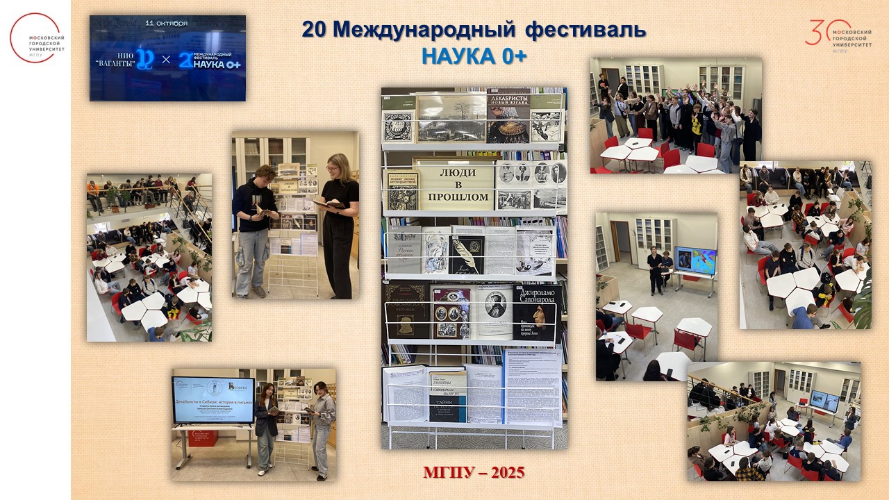 Всероссийский фестиваль НАУКА 0+ — крупнейший просветительский проект в области популяризации науки и одно из ключевых событий Десятилетия науки и технологий. Московский городской — постоянный участник данного мероприятия.