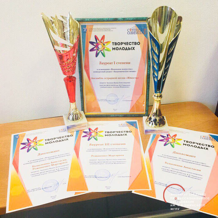 Студенты Института СПО имени К.Д. Ушинского учебного корпуса «Колледж Медведково» приняли активное участие и заняли призовые места в Городском открытом фестивале детского и юношеского творчества «Ступени Олимпа» в программах «Творчество молодых» и «Семицветик».