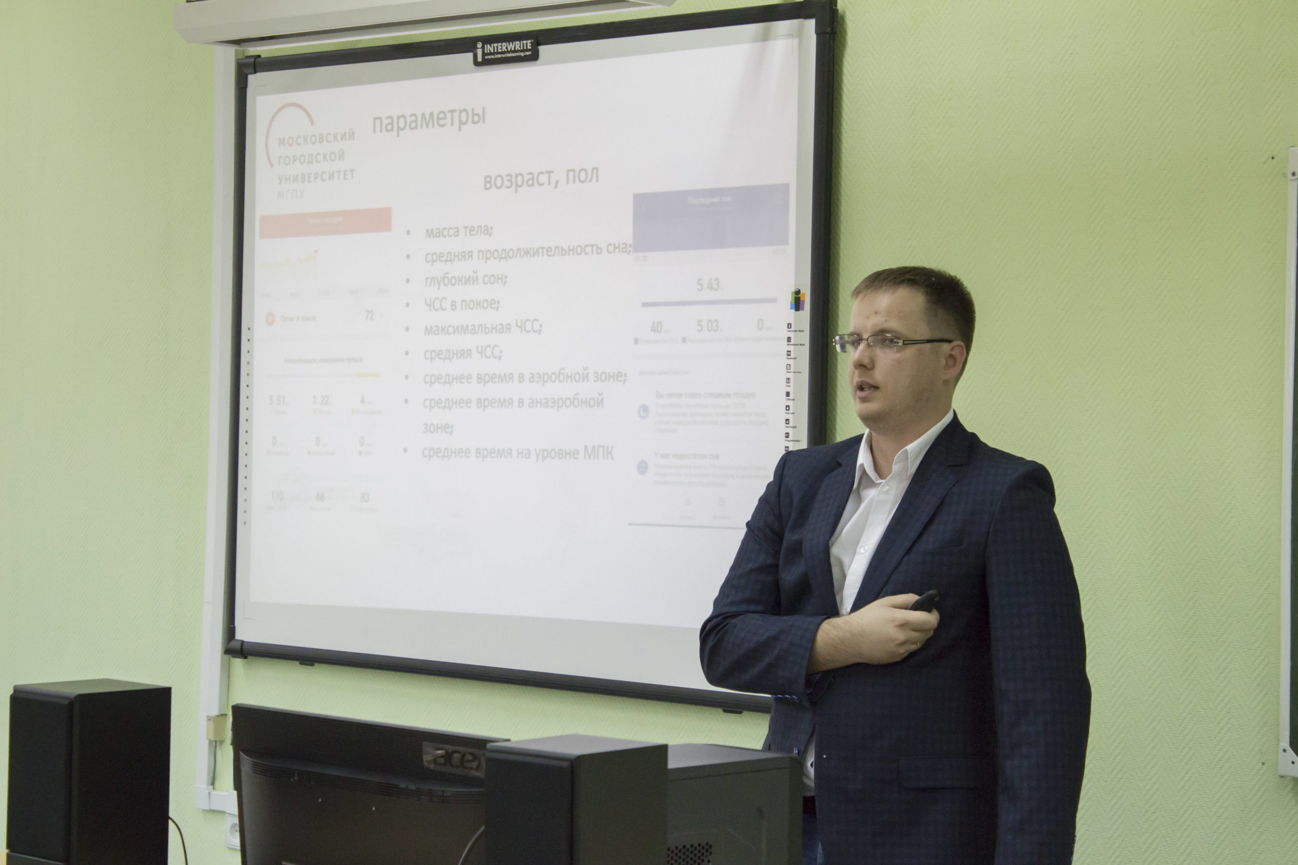 В Институте естествознания и спортивных технологий МГПУ 26 апреля прошел научный семинар «Типовой портрет физической активности московского школьника — результаты наблюдений». Докладчиком выступил ассистент кафедры адаптологии и спортивной подготовки Андрей Сизов.