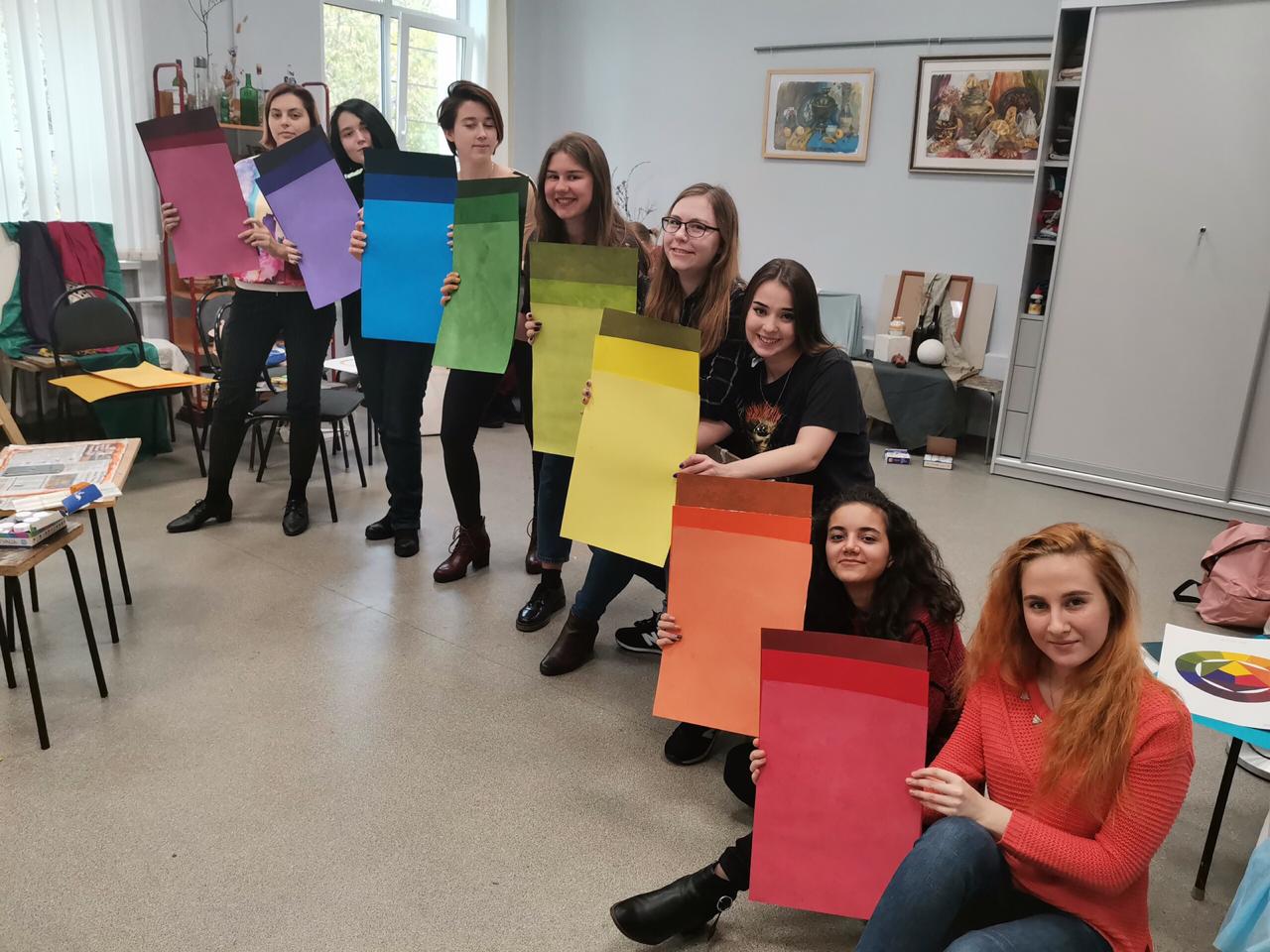 Занятия по Цветоведению на 3 курсе направления «Изобразительное искусство» (Педагогическое образование) ведут доценты Людмила Хозяшева и Светлана Валикжанина