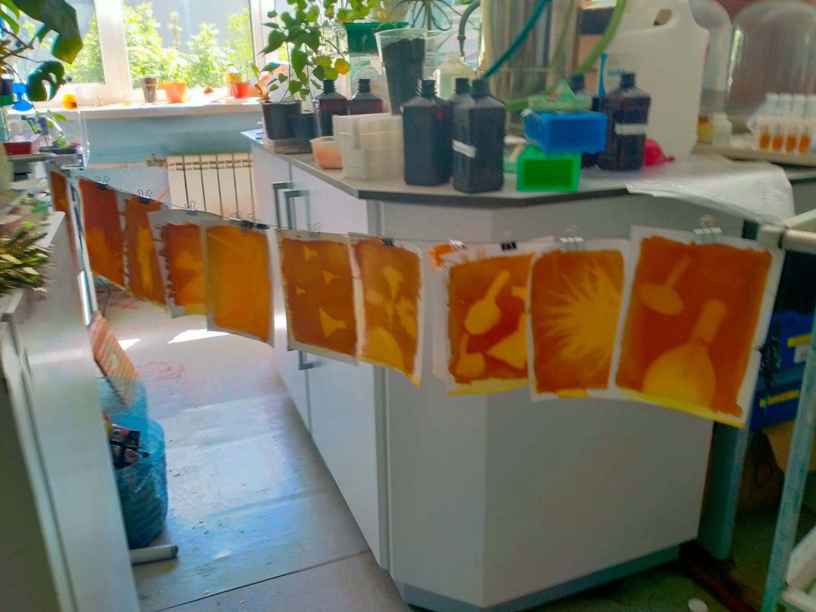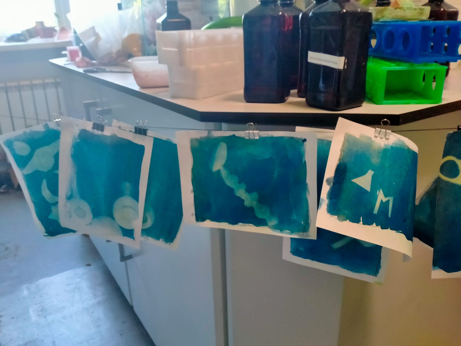 Сегодня ребята в смене «Джуманджи» создавали гербарий и печатали цветы методом цианотипии.