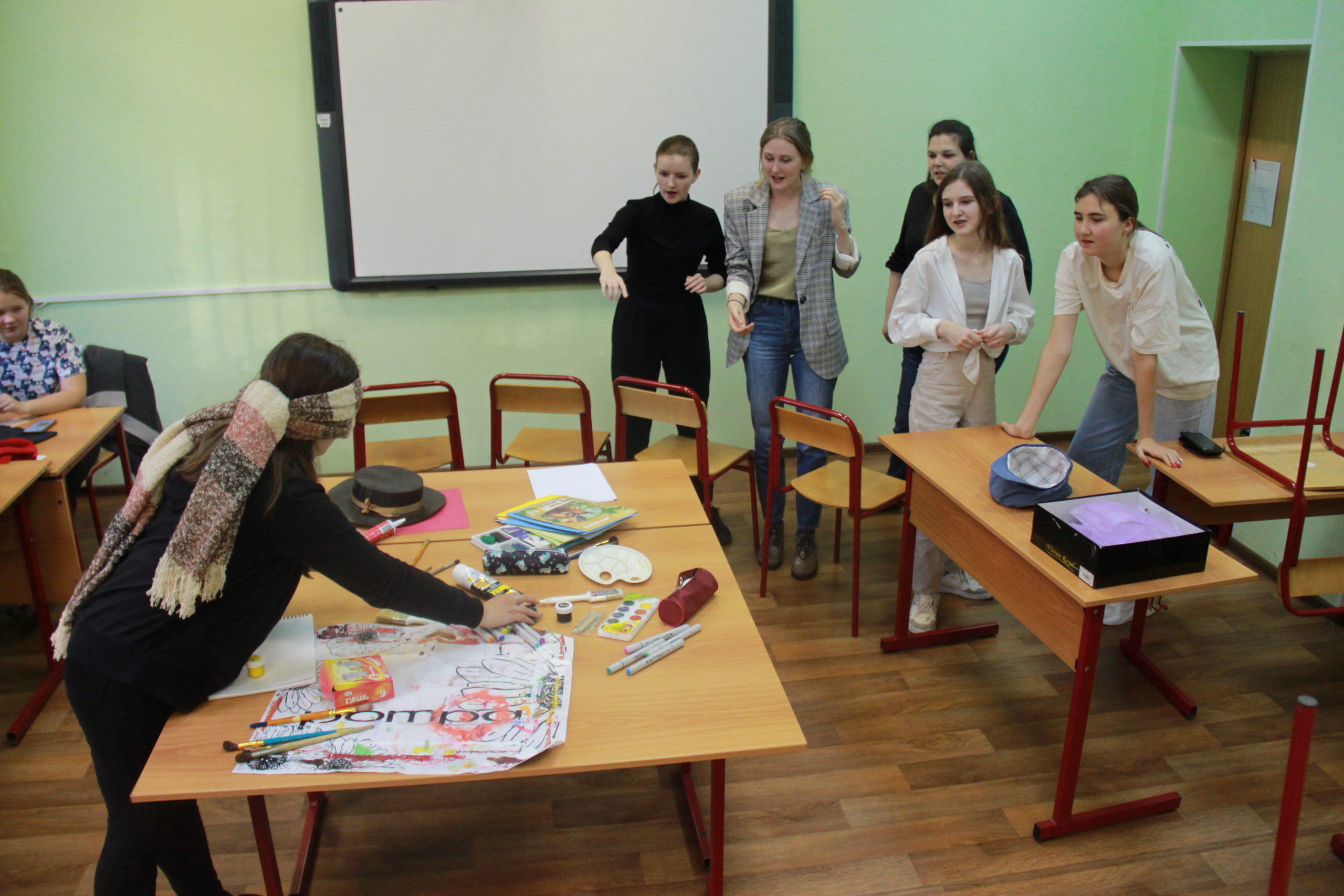 Ребят ждали удивительные задания! Кролик путал следы и чтобы дойти до квеста группам нужно было выполнить задания — подготовить эмблему команды, рассказать о себе в видео и подготовить план чудесной страны Студентии (план корпуса). Это сплотило команду и Белая и Красная королевы решили, что они готовы пройти квест. Сама Алиса, Белая королева, Труляля и Траляля, Белый кролик, Шляпник, Абсолем и Чеширский кот подготовили задания и решили испытать команды.