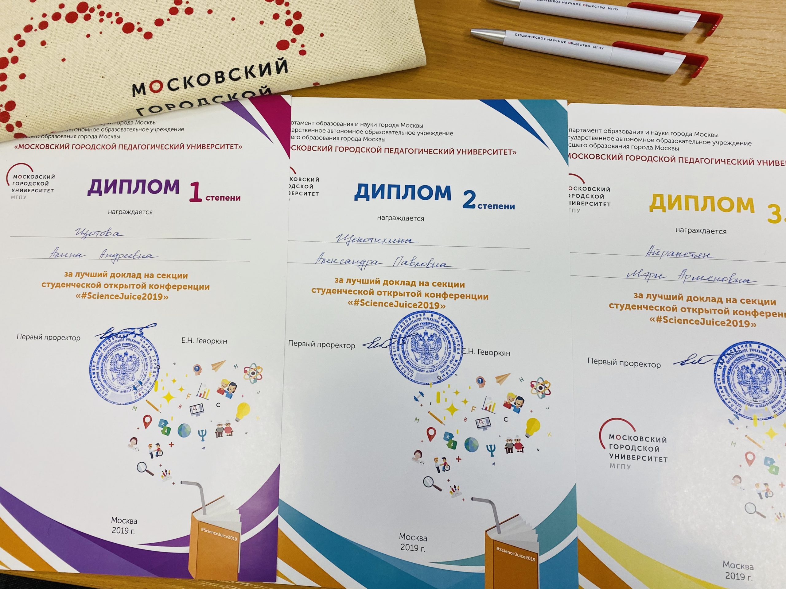 28 ноября 2019 года на кафедре китайского языка ИИЯ МГПУ состоялось заседание секции Солянко Екатерина Анатольевна и Благая Антонина Валерьевна. Свои доклады представили 15 студентов. Дипломом 1-ой степени была награждена Изотова Алина (ВК-182), дипломом 2-ой степени — Щекотихина Александра (ПЕРА-172), дипломом 3-ей степени — Айрапетян Мэри (ПЕРК-191).