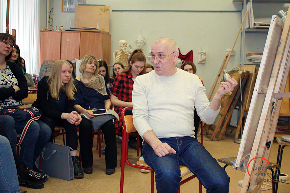 В рамках проекта #КлассИКИ при поддержке Департамента образования г. Москвы в субботу 7 апреля в Институте прошел мастер-класс профессора, члена Союза художников России и Союза дизайнеров России, доктора педагогических наук, зав. кафедрой рисунка и графики Сергея Рощина. Сергей Павлович одновременно рассказывал об этапах рисования классической гипсовой головы и показывал технические приемы рисования, сидя перед мольбертом. На мастер-класс пришли школьники старшего возраста, студенты колледжей и их родители. Участники в режиме реального времени увидели все стадии работы и окончательный результат — академический рисунок гипсовой головы. Сергей Павлович рассказал об общих академических требованиях к рисунку гипсовой головы, о методике его создания, о критериях оценки такого рисунка. Такие мастер-классы, где творчество соединено с очевидной практической направленностью, пользуются чрезвычайной популярностью в преддверии приемной кампании в художественных вузах. Желающие смогли задать Сергею Рощину вопросы — о рисунке, об Институте и вступительных испытаниях.