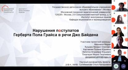 1 место — «Нарушения постулатов Г. П. Грайса в речи Джо Байдена» (участники — Гиоргадзе Медеа (руководитель), Миконяти Мария, Кузьмин Михаил, Картавова Полина, Лепилов Владимир)
