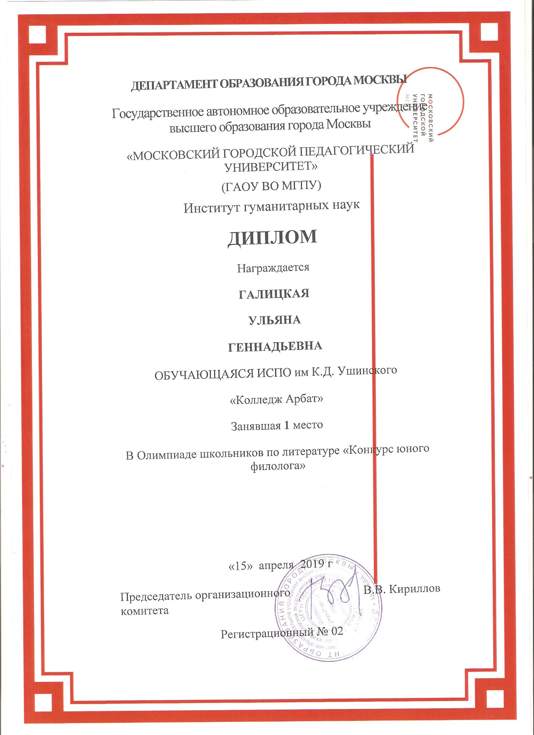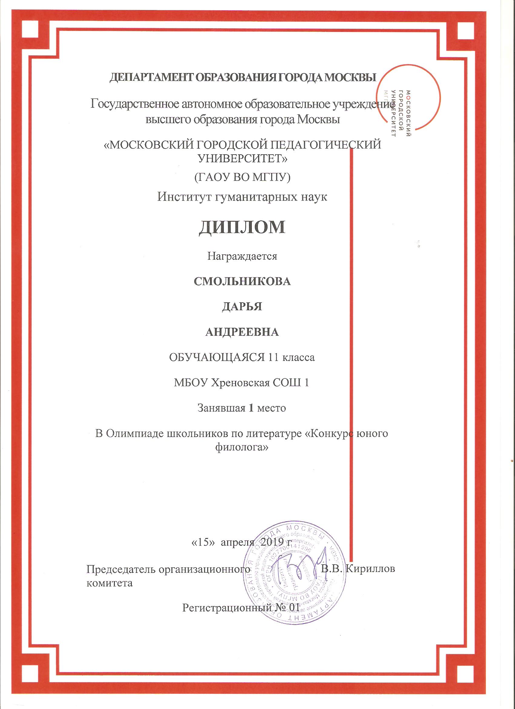 Кафедра русской литературы подвела итоги олимпиады для школьников по литературе «Конкурс юного филолога».