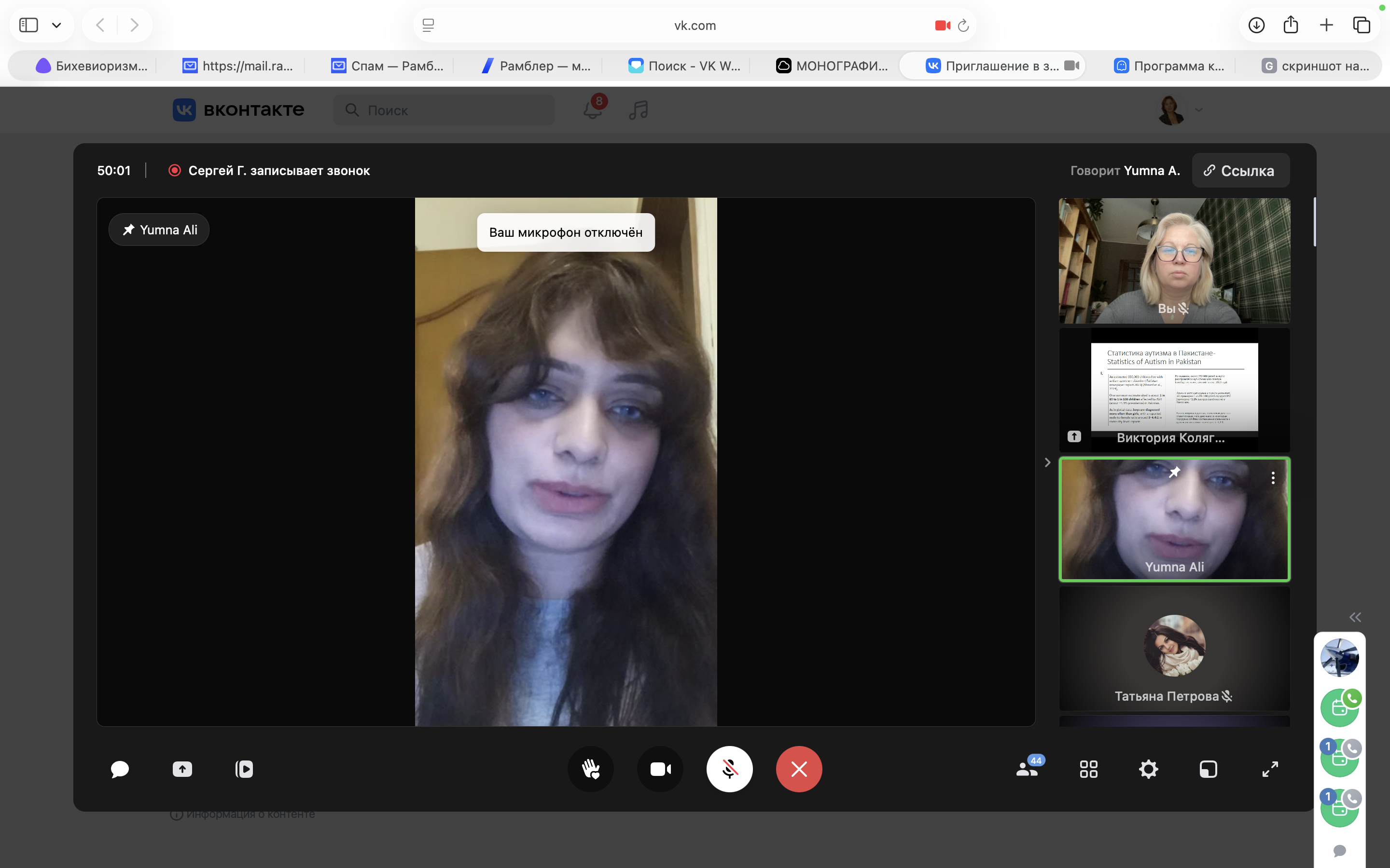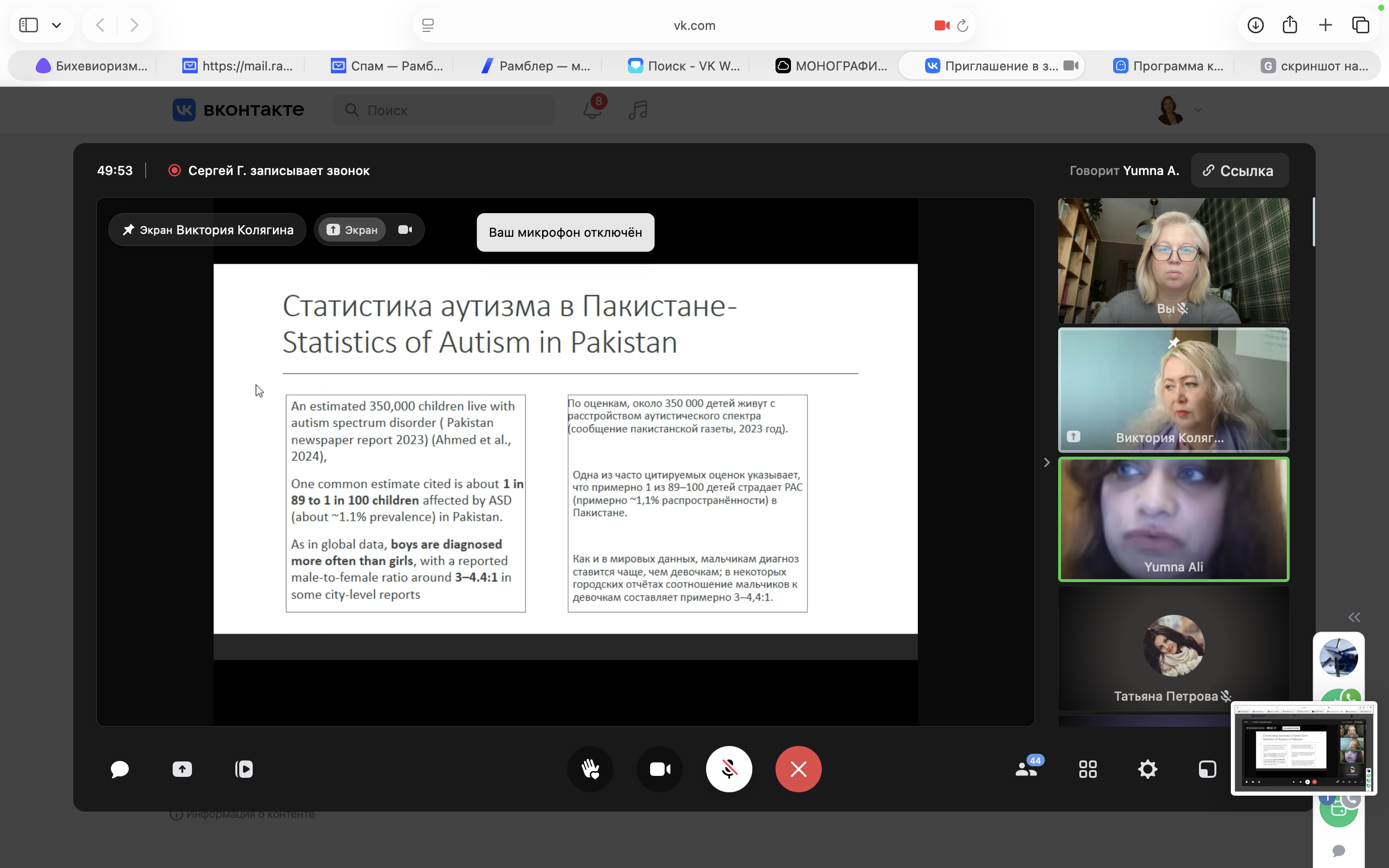 Иностранные коллеги представили свои научные наработки в формате онлайн докладов. Представитель Хазарского университета, кандидат психологических наук, преподаватель и исследователь психологии Юмна Али (Yumna Ali) (Пакистан, Хазар) в описательном исследовании проанализировала ситуацию с аутизмом в Пакистане.