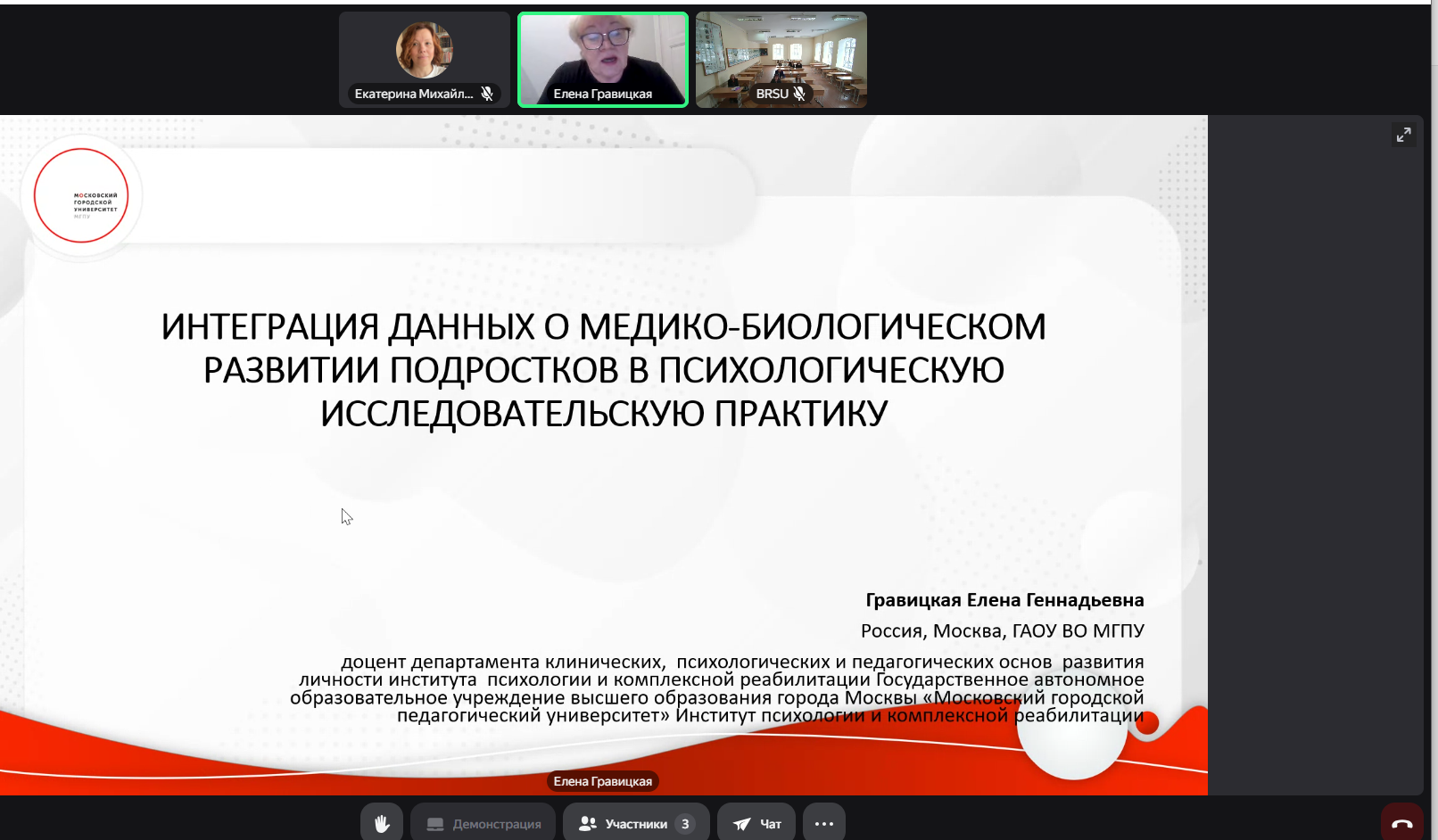На секционных заседаниях преподаватели ИПКР поделились результатами исследований в проблемном поле конференции:- Гравицкая Елена Геннадьевна, доцент, кандидат биологических наук, доцент, в докладе «Интеграция данных о медико-биологическом развитии подростков в психологическую исследовательскую практику»;