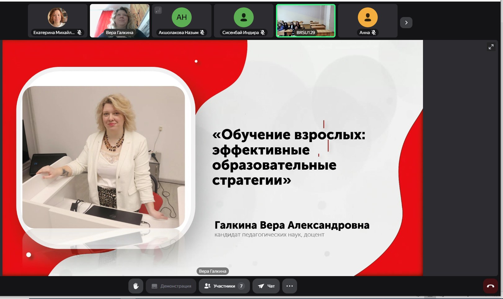 - Галкина Вера Александровна, доцент, кандидат педагогических наук, в докладе «Обучение взрослых: эффективные образовательные стратегии»;