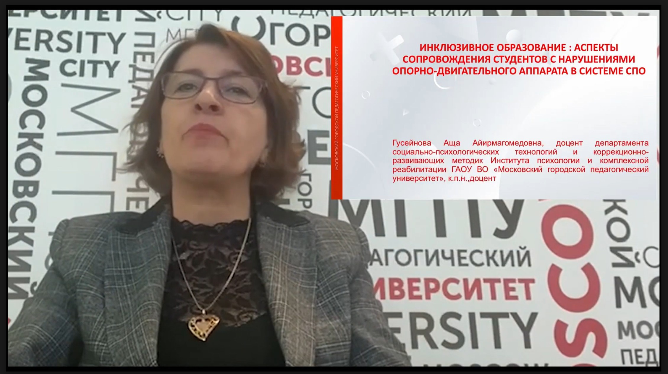 - Гусейнова Аща Айирмагомедовна, доцент, кандидат педагогических наук, доцент, в докладе «Инклюзивное образование: аспекты сопровождения студентов с нарушениями опорно-двигательного аппарата в системе СПО»;