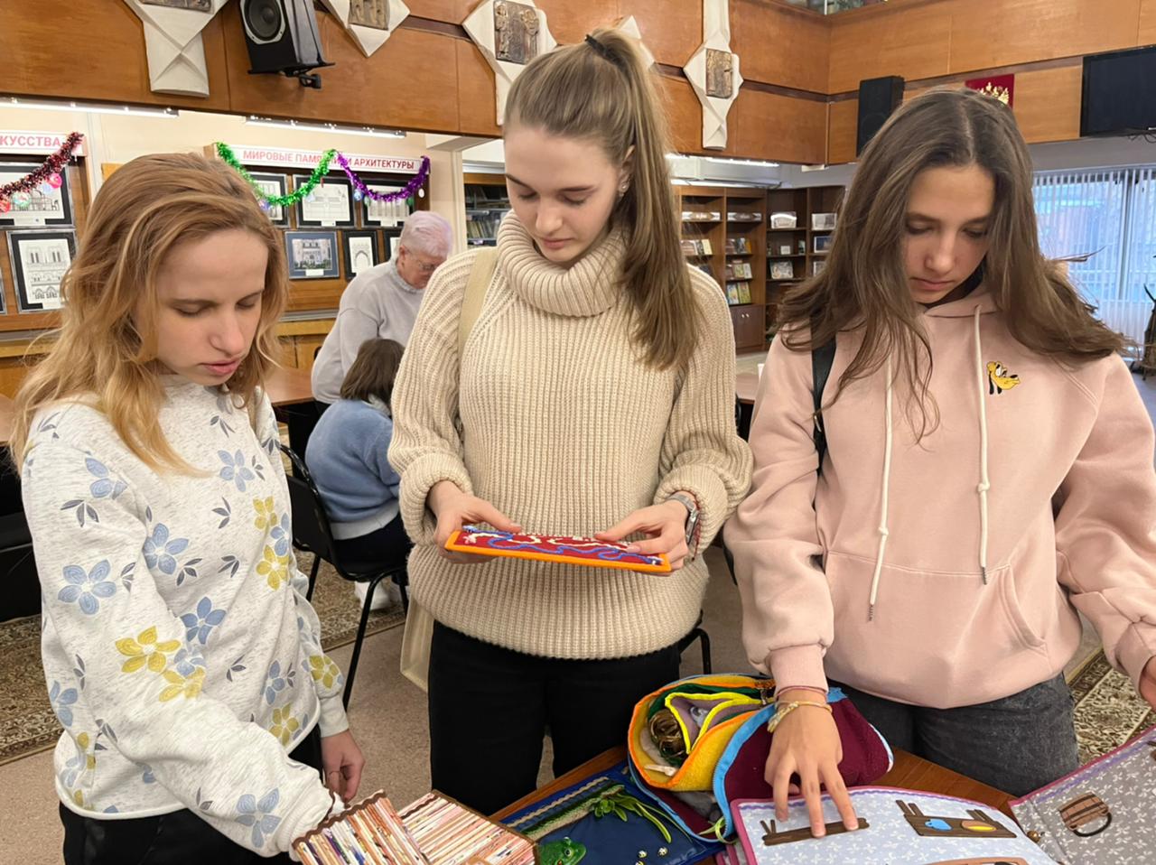 Проект по созданию индивидуальных тактильных рукодельных изданий — тактильных книг «Мир в ладошках» стартовал в 2021 году. Над созданием книг трудятся участники городского проекта «Московское долголетие».