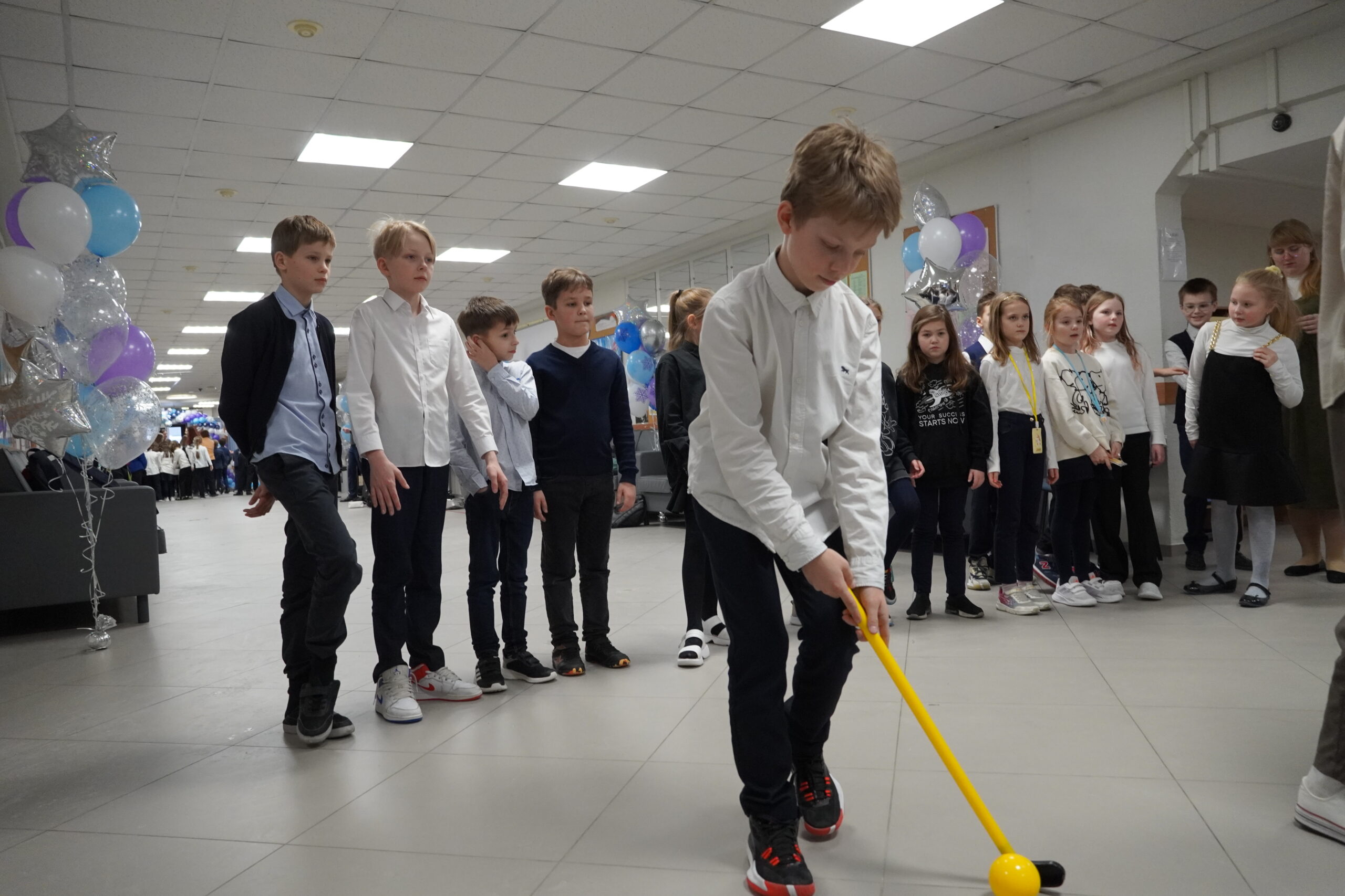 19 декабря обучающихся 1−4 классов встречали волонтеры — студенты института культуры и искусств. Им удалось подарить множество позитивных моментов и положительных эмоций младшим школьникам, и самим получить огромное удовольствие от этой работы. Был организован самый настоящий танцевальный флэш-моб, массовые игры с использованием хоккея, кольцеброса, мини-гольфа, городков и др. На лицах, всех желающих волонтеры-визажисты нанесли аквагрим, а с помощью световой интерактивной песочницы каждый мог создать свою зимнюю инсталляцию.