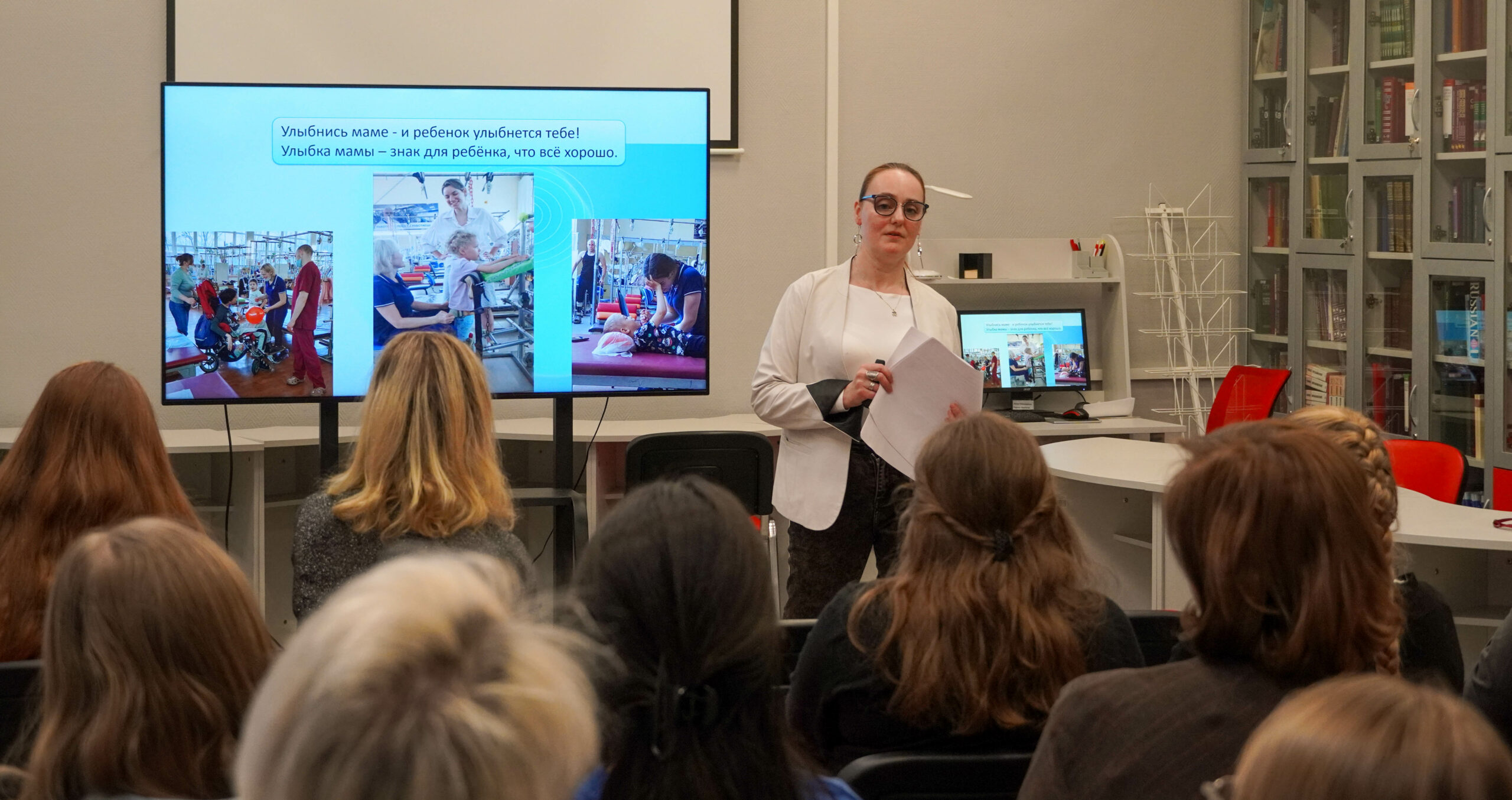 Анна Валентиновна всё это рассказывала, как в ЛФК ГБУЗ «Московский центр реабилитации больных со спинномозговой травмой и последствиями ДЦП Департамента здравоохранения города Москвы» мамы все улыбаются, они рады и счастливы всем успехам, своим и своих детей — это невероятно здорово!