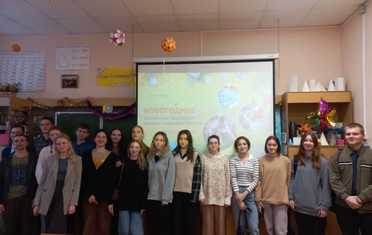 Вместе с обучающимися на практических примерах рассмотрено многообразие культуры и традиций народов России, особенности встречи Нового года, обычаев его празднования. В завершении мероприятия студенты приняли участие в увлекательной викторине, где смогли продемонстрировать полученные знания, узнать много нового и познавательного. Победителями викторины стали: