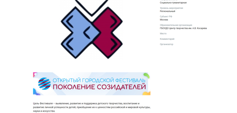 Ежегодно в Москве проводится Открытый городской фестиваль «Поколение созидателей», в рамках которого проходит конкурс равных возможностей «Дорогою добра» для детей с ограниченными возможностями здоровья. Данное мероприятие организует Государственное бюджетное образовательное учреждение дополнительного образования города Москвы «Центр творчества имени А.В. Косарева». Конкурс равных возможностей «Дорогою добра» дает возможность ребятам с инвалидностью и ограниченными возможностями здоровья продемонстрировать свои творческие возможности, показать уровень мастерства в разных техниках.