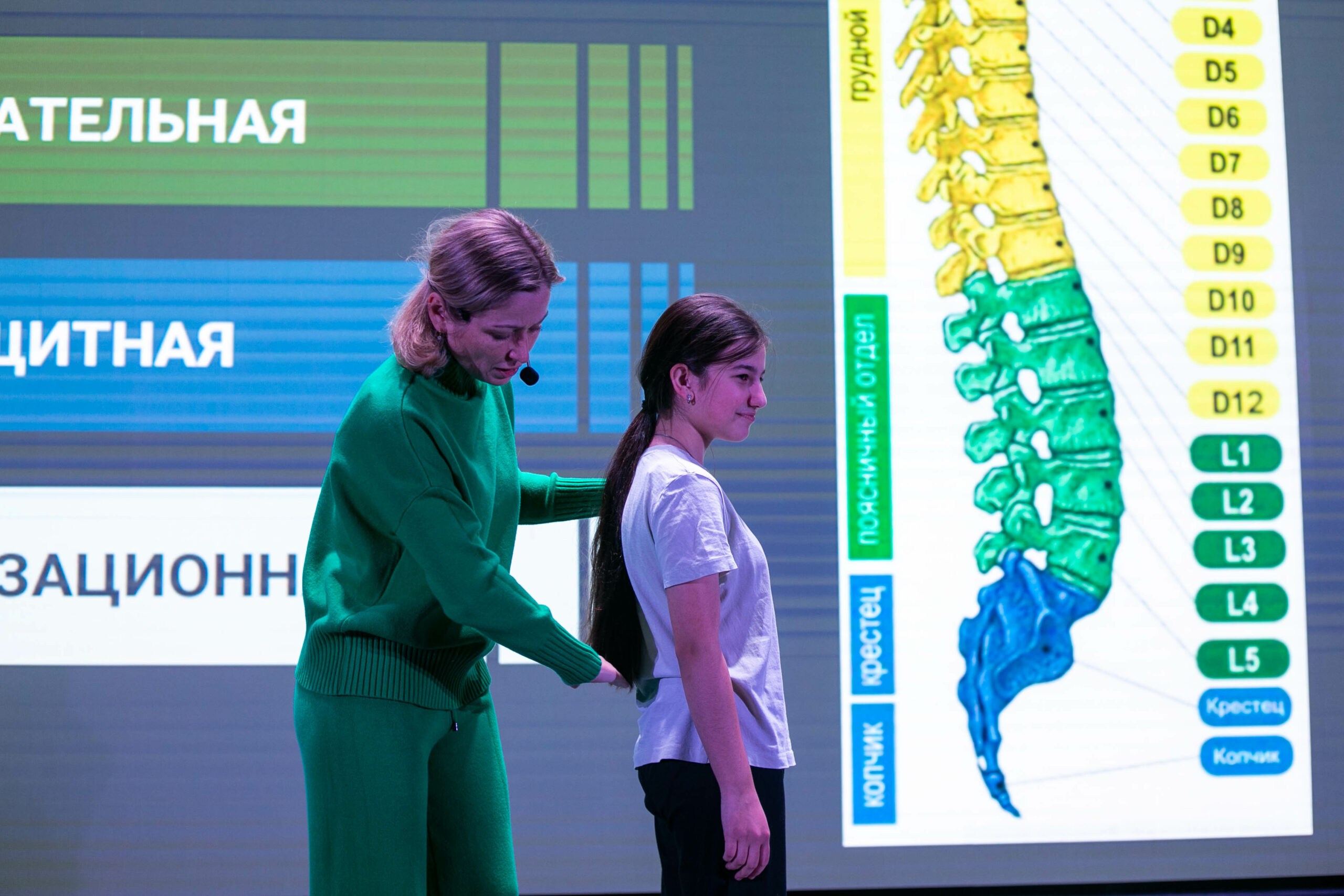 Лекторы обсудили с ребятами особенности и правила ходьбы, правильного положения тела в положении сидя, выполнили простейшие упражнения для снятия напряжения с мышц позвоночного столба.