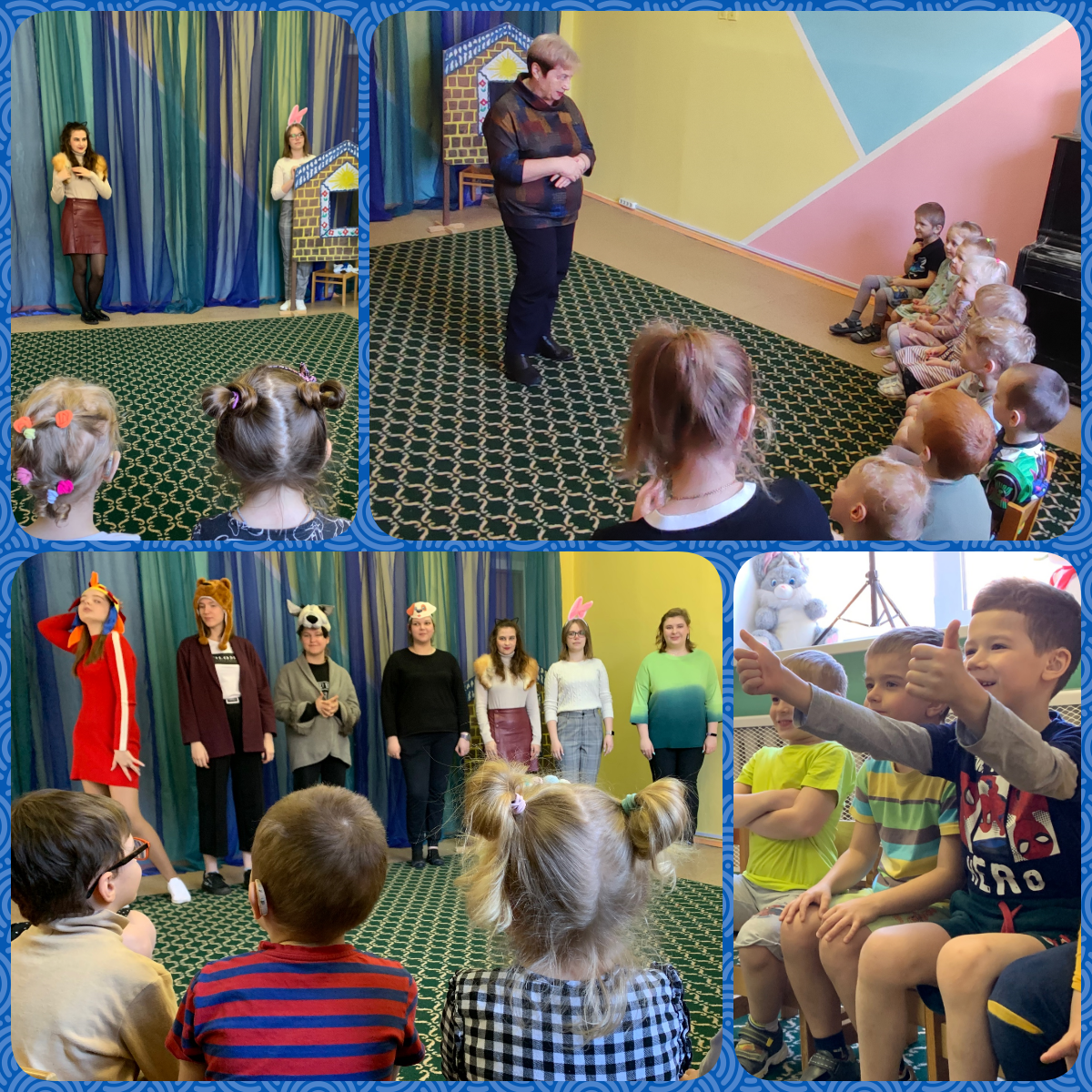 Дети встретили гостей как добрых знакомых. Замечательно реагировали на каждое действия главного героя Зайчика, который гостеприимно помог Лисе весной после того, как под горячими лучами весеннего солнца у нее растаяла ледяная избушка. Наши волонтеры показали спектакль три раза для каждой из групп в структурном подразделении ГБОУ Школа 1708 структурное подразделение Ломоносовский проспект, 23, -группы для детей с нарушениями слуха 3−7 лет. Сказка подарила детям много положительных эмоций, адаптационная версия так понравилась даже самым маленьким зрителям, которые аплодировали Петуху с косой, на которого легла главная задача: выгнать Лису из домика Зайчика всем залом!