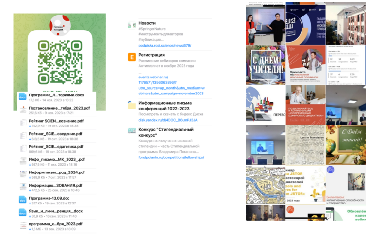 «Научная ИсторИЯ» — Телеграм-канал, созданный как инструмент популяризации науки. В канале публикуются новости науки и культуры, ежемесячные подборки конференций для возможного участия, обзоры научных журналов, монографий, учебных пособий, важные документы в сфере науки и образования. Основные рубрики: #ученые_МГПУ (информация о научных мероприятиях, в которых принимают участие преподаватели ИИЯ МГПУ); #новости_науки (актуальные для научного сообщества события); #ИИ_в_науке (достижения в области искусственного интеллекта, цифровизации и компьютерных технологий), #Вестник_МГПУ (новые выпуски, знаковые публикации, авторы журнала), #Пед_дискурс, #Диалог_культур (рубрики посвящены Всероссийской и Международной научным конференциям, ежегодно проводимым на базе ИИЯ). Канал постоянно растет и развивается, привлекая подписчиков не только среди преподавателей ИИЯ, но и из других вузов.