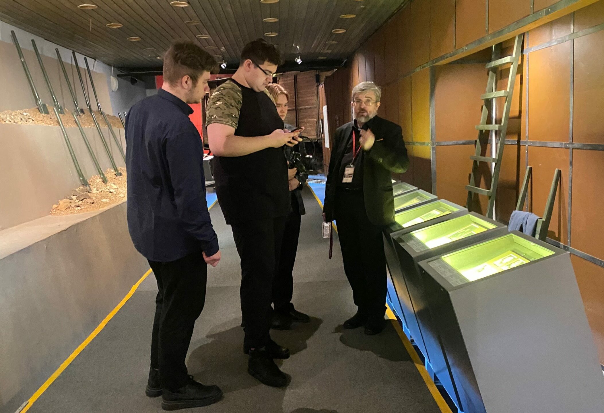 Консультацию на экспозиции для студентов оказывает в прошлом выпускник института гуманитарных наук — методист по научно-просветительской деятельности Кирилл Дряннов.
