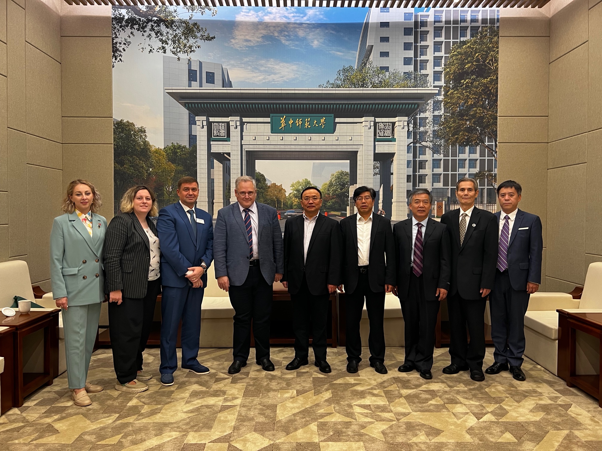 В этот же день делегация МГПУ посетила Институт международных культурных обменов Педагогического университета Центрального Китая. Со стороны института на встрече присутствовал декан факультета русского языка Лю Юнхун. В рамках встречи обсуждались перспективы организации программы магистратуры 1+1 для студентов, изучающих китайский язык в МГПУ, и студентов Педагогического университета Центрального Китая, изучающих русский язык.