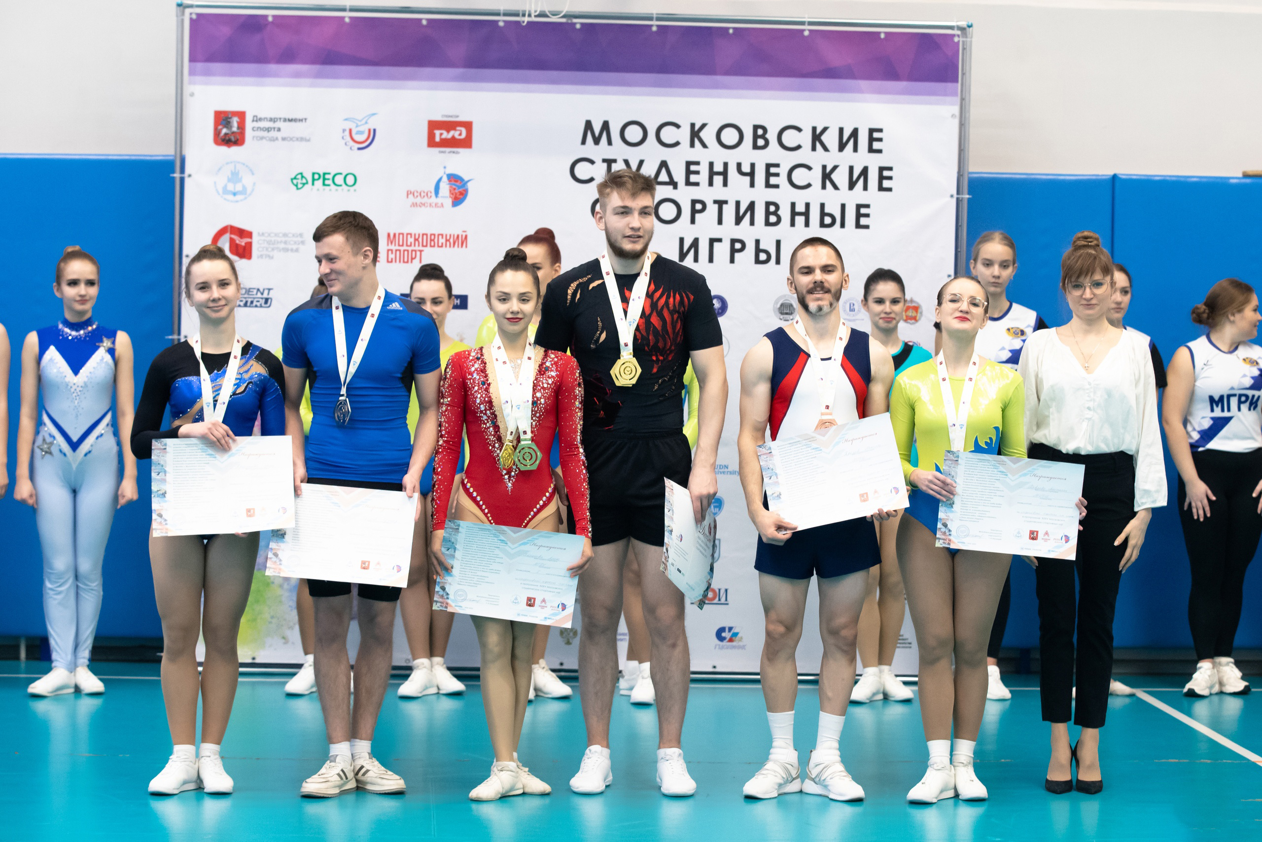 В спортивном зале института естествознания и спортивных технологий МГПУ прошли соревнования по спортивной аэробике в программе XXXVI Московских студенческих спортивных игр. Команда Московского городского стала чемпионом в командном зачете.