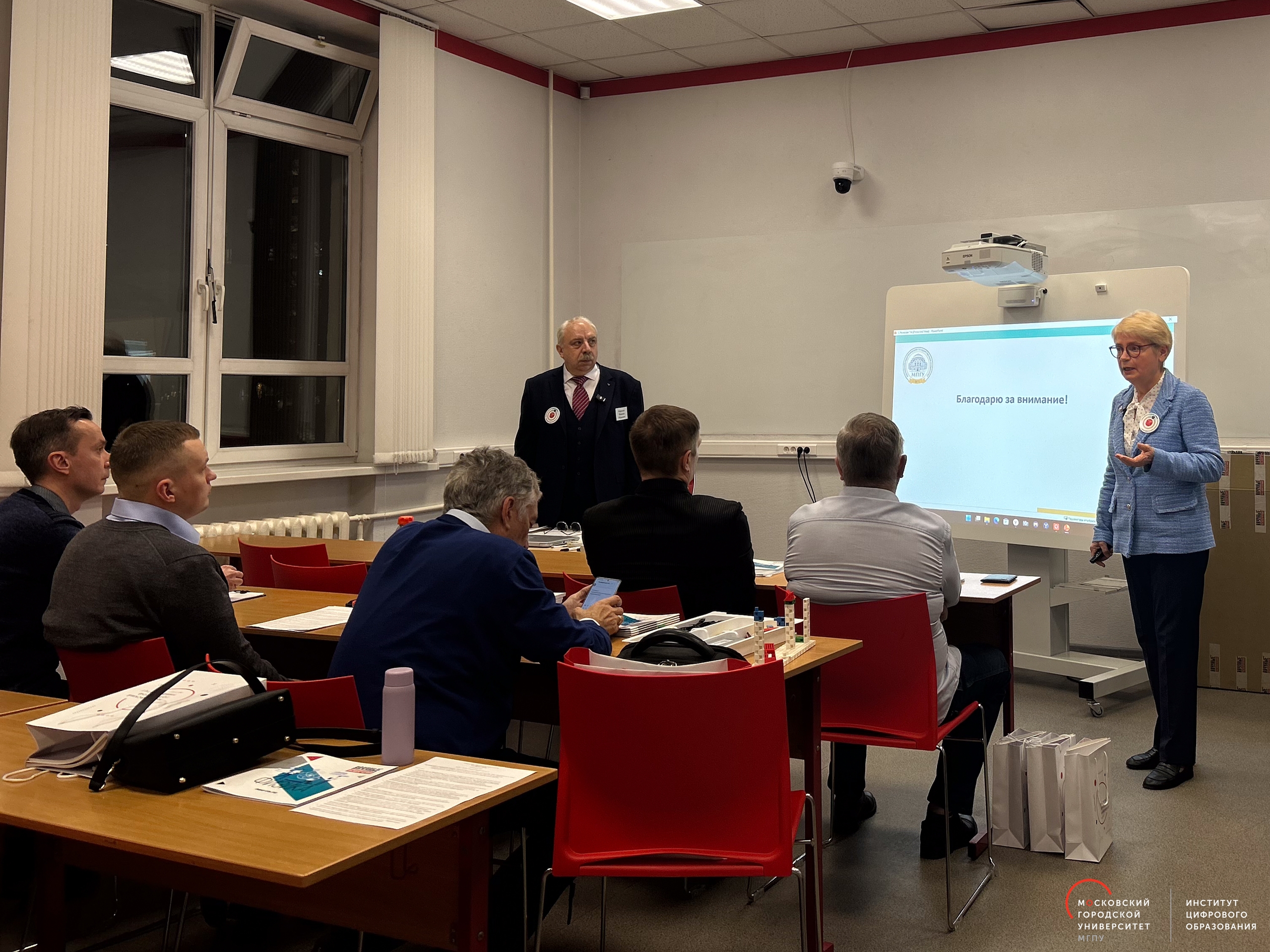 Королев Максим Юрьевич, доктор педагогических наук, кандидат физико-математических наук, доцент, начальник департамента математики и физики; Петрова Елена Борисовна, доктор педагогических наук, доцент, профессор департамента математики и физики на тему: «О проблеме обеспечения оборудованием вузовских физических лабораторий и демонстрационных кабинетов».