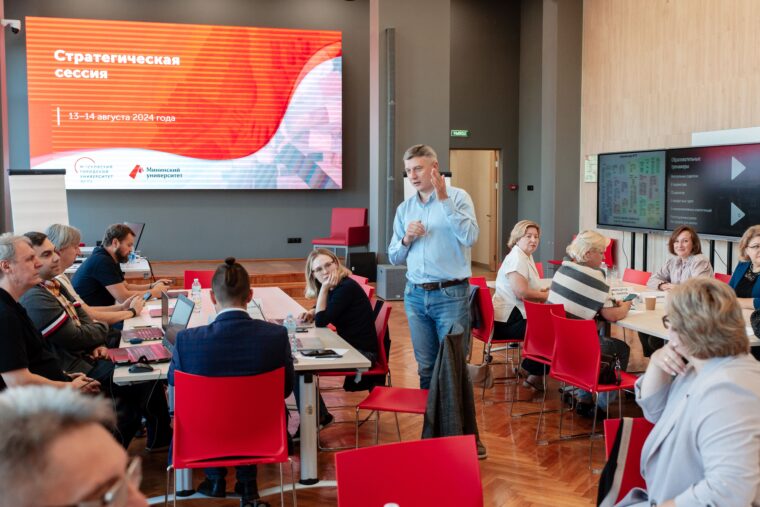 На рефлексивном этапе стратсесиии эксперты МГПУ дали обратную связь команде Мининского университета и поделились практическим опытом реализации стратегических проектов программы «Приоритет-2030».
