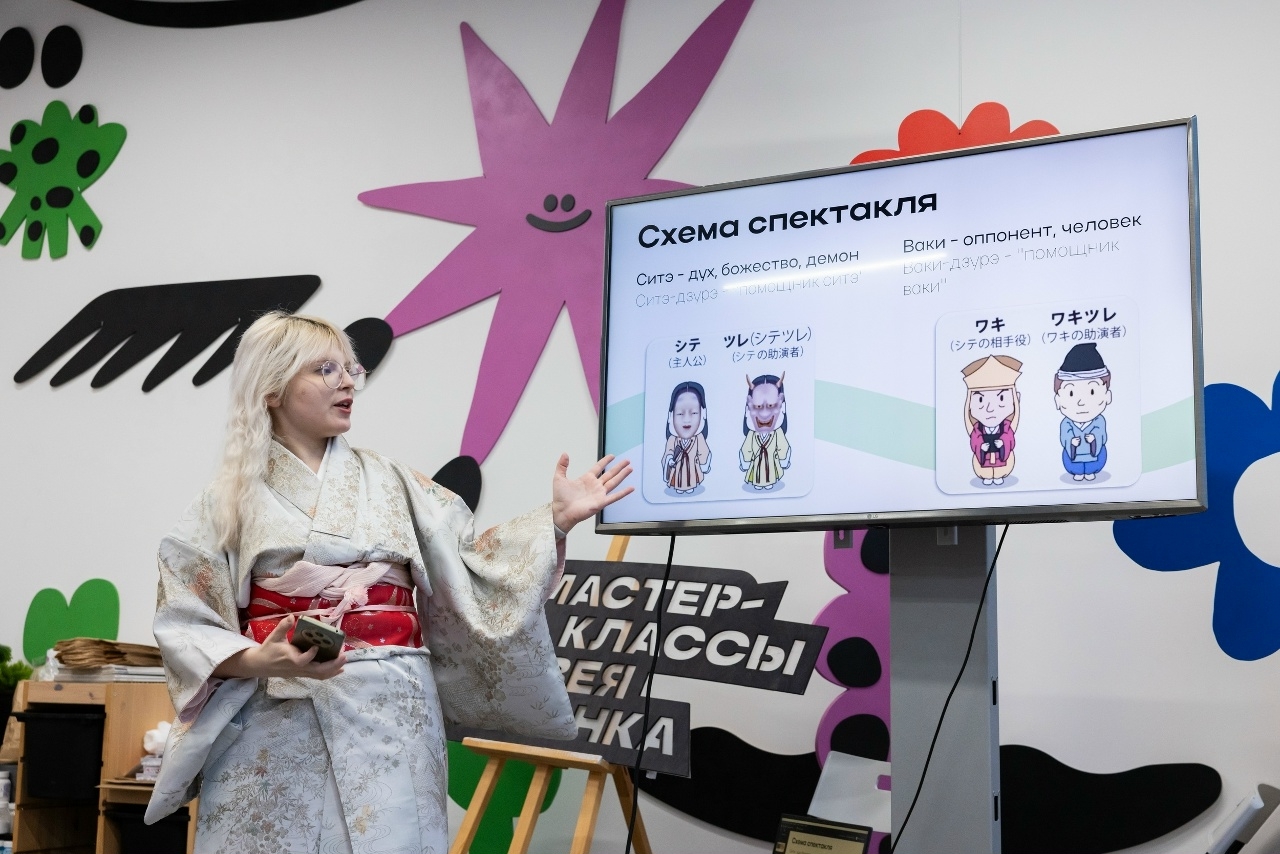Посетители имели возможность прикоснуться к сценическим веерам и либретто-утаибонам и даже самим спеть песню ёкёку «Пожилая сосна» под руководством Виктории, занимавшейся пением ёкёку в Японии. Это уникальный навык, поэтому надеемся, что Виктория проведет подобные мастер-классы еще не раз.