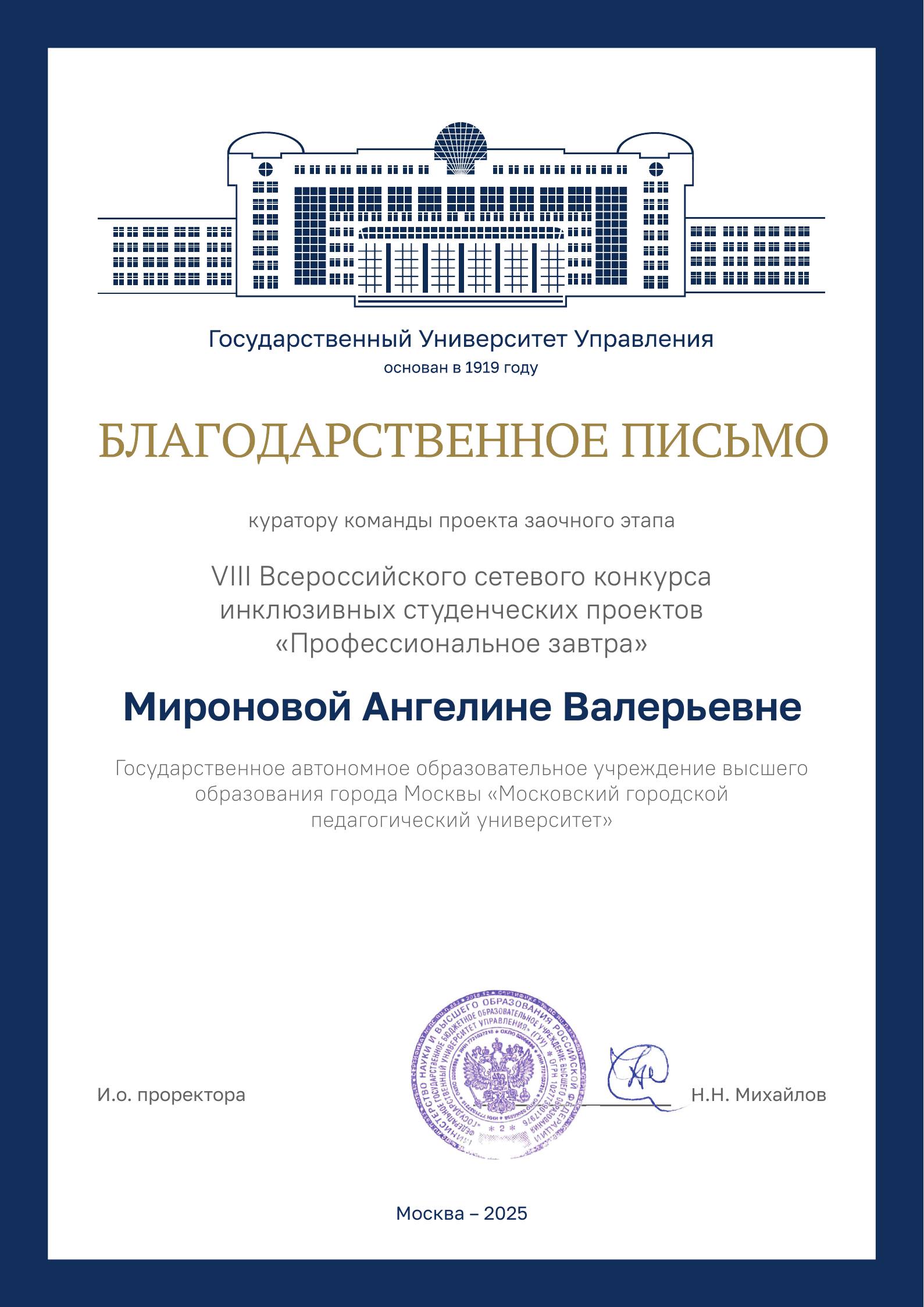 В последний день декабря 2025 года стали известны результаты VIII Всероссийского сетевого конкурса инклюзивных студенческих проектов «Профессиональное завтра». Мы рады поздравить студентку 2 курса института психологии и комплексной реабилитации Софью Хараш с достойным представлением на конкурсе своего проекта «Медиа-наставник «ДефектологPRO: Сообщество будущего специалиста», который был отмечен членами жюри дипломом «За наличие апробации проекта».