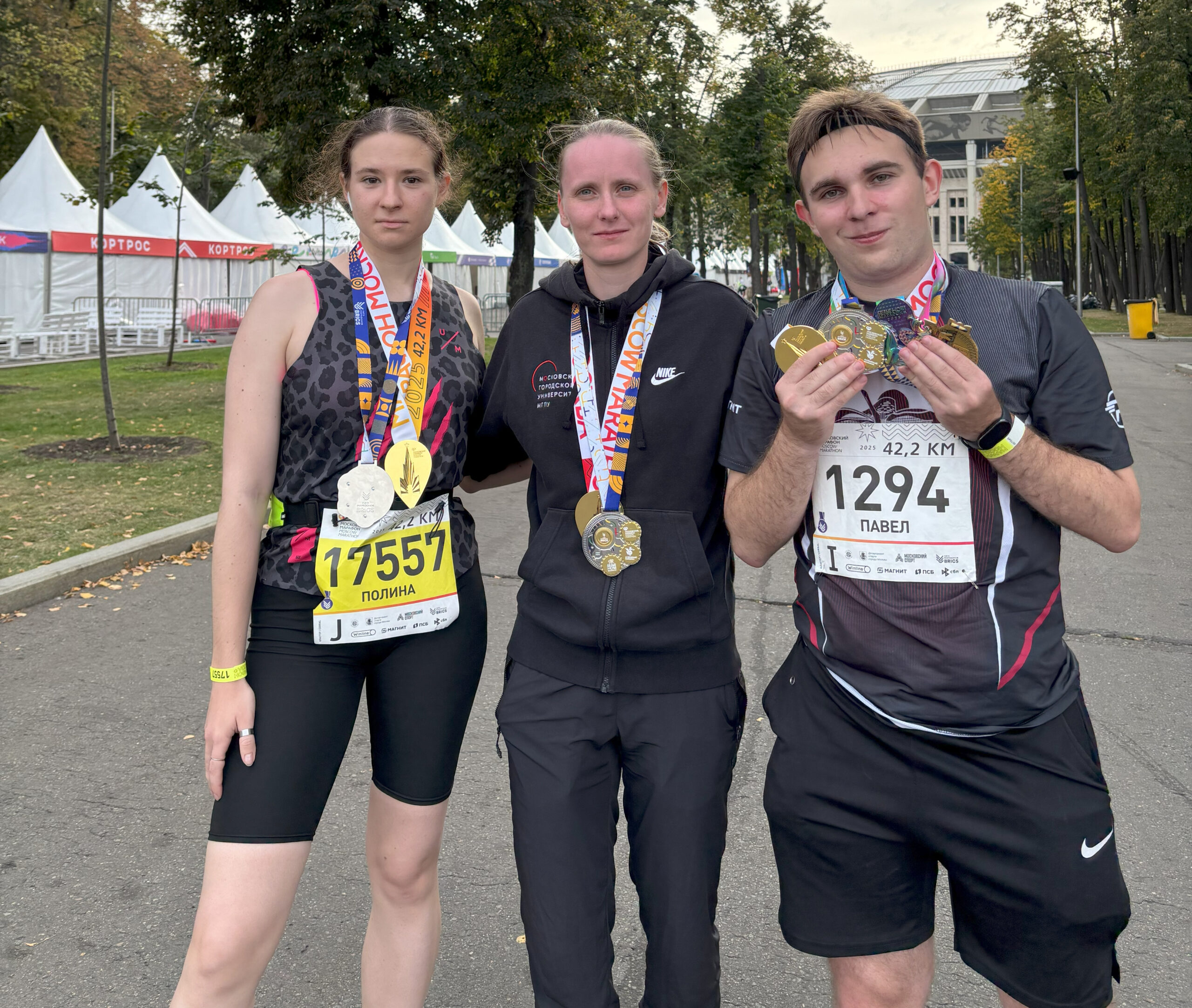 Научный сотрудник лаборатории образовательных инфраструктур Екатерина Барсукова форсировала 42 км с результатом 4:04:30. Дебютировал на марафоне старший преподаватель института гуманитарных наук Павел Лакаев, завершивший дистанцию за 4:07:42.Четверокурсник программы «История, обществознание» института гуманитарных наук Ян Лебедев пробежал свой первый в жизни марафон с результатом 3:54:03 — 49 время в его возрастной группе, а магистрант первого года обучения программы «Технологии физического воспитания в современном мегаполисе» Павел Тиликин финишировал с результатом 5:18:15. Выпускница ИГН и ИПиКР Полина Абрамович завершила королевскую дистанцию за 5:46:48.