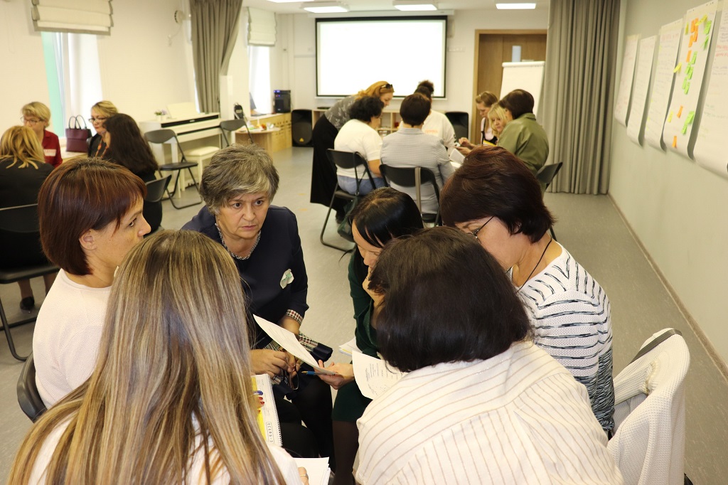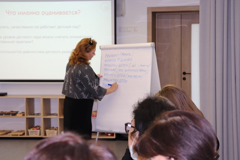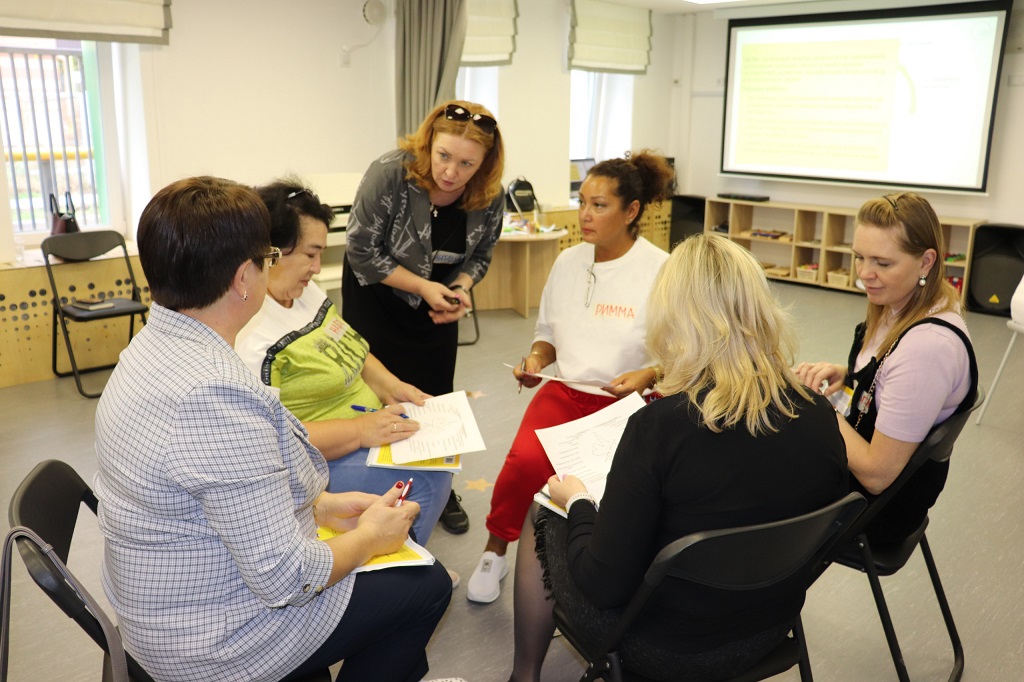Так, 3 и 4 октября на базе детского сада «Каракуз» (структурное подразделение ЧОУ «Татнефть-школа», г. Альметьевск) прошел первый семинар для руководителей детских садов — участников проекта. Ведущие управленческой программы — эксперты лаборатории развития ребенка Екатерина Стародубцева и Наталия Тюменцева — обсудили с участниками перемены в мире и социальных процессах, которые обусловливают необходимость изменений в образовании. Особенно важной темой в обсуждениях была роль лидера в создании условий для перемен, в том числе в развитии корпоративной культуры организации. Руководители детских садов зафиксировали процессы, которые необходимо запустить или откорректировать в своих образовательных организациях для успешного участия в проекте, сформировали пошаговый план действий. Работа продолжится в онлайн-формате: участников ждут интерактивные семинары и индивидуальные консультации с экспертами лаборатории. Завершением этого этапа работы станет очная встреча руководителей детских садов 13−14 декабря в Альметьевске, где они проанализируют свое взаимодействие с командами, спроектируют дорожную карту изменений по итогам внутренней оценки качества образовательной среды.