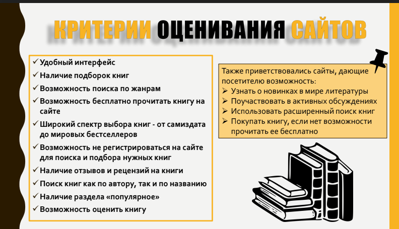 Проведя опрос среди студентов МГПУ, Екатерина выявила критерии выбора таких сайтов и их востребованность. На основе ответов респондентов и собственной оценки она составила дайджест, включающий в себя пять сайтов, а также прописала достоинства и недостатки онлайн-площадок, не вошедших в рейтинг.
