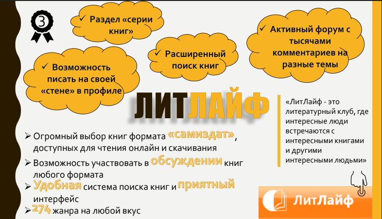 Студентка Института иностранных языков Екатерина Грибанова посвятила свое исследование сайтам, так или иначе позволяющим обозревать книги — оставлять отзывы, рецензии, участвовать в дискуссиях, вести блоги.