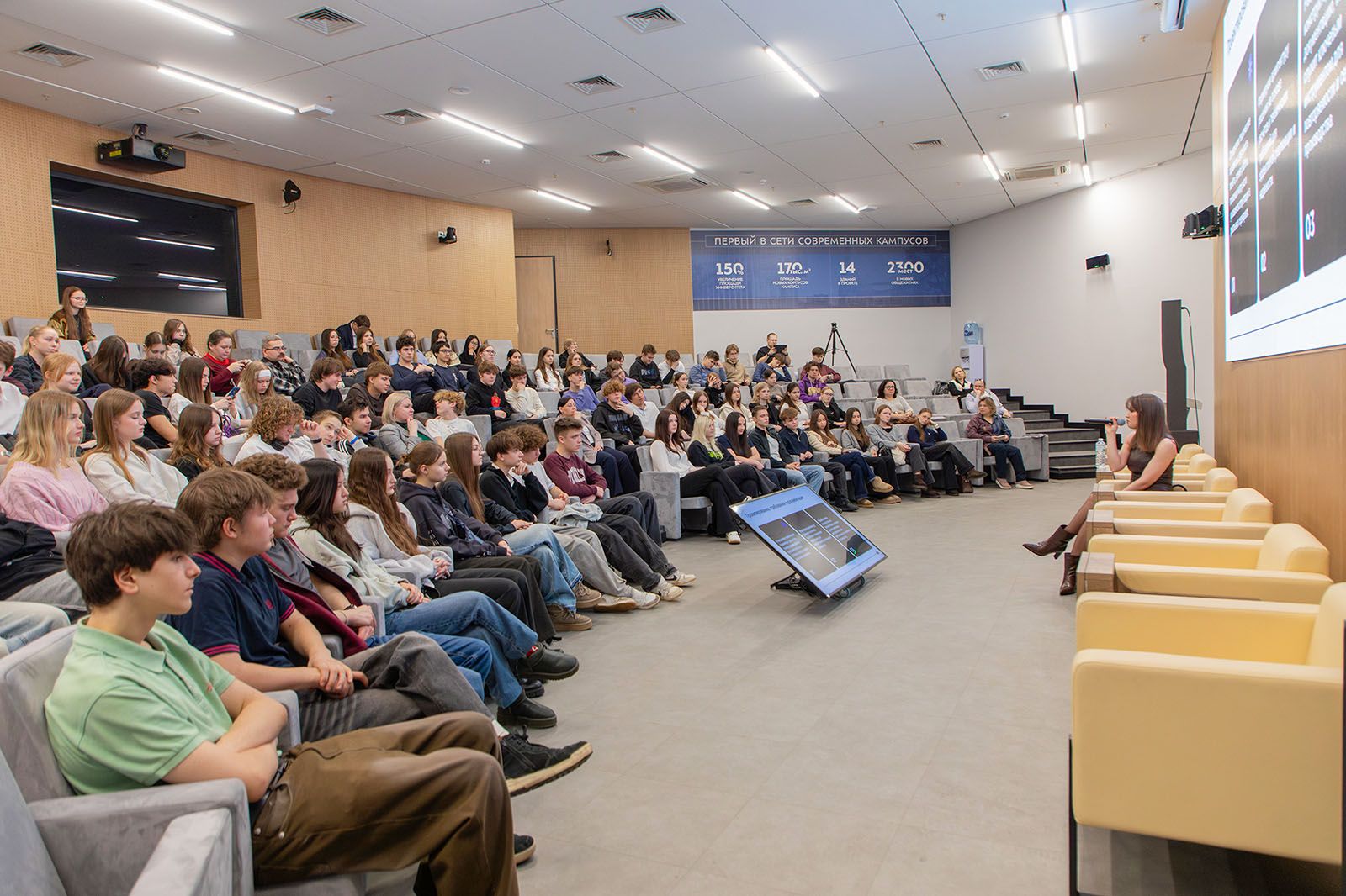 Екатерина Корнюшина, генеральный директор крупной ИТ-компании «Эй Ай Дипфейк», рассказала о том, как наука и бизнес взаимодействуют в процессе создания инновационных решений и каковы текущие потребности рынка. С особенностями работы в сфере биотехнологий школьников познакомила Дарья Фрейманс, выпускница инженерного класса школы № 2120 и генеральный директор инновационной компании «Климбиотех», специализирующейся на ускоренной селекции растений.