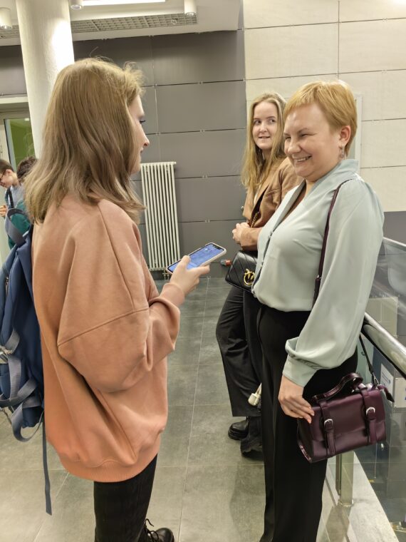 25 ноября 2023 года делегация института специального образования и психологии в составе доцентов Надежды Поляковой, Ольги Соколовой и студентки 4 курса Устюжаниновой Елены, обучающейся по направлению «Тифлосурдопедагогика», посетила НИУ ВШЭ в качестве гостей проекта «Уверенный курс», который реализуется командой слабовидящих и незрячих специалистов «Мир иначе» при поддержке Московской городской организации ВОС и Департамента труда и социальной защиты населения Москвы. Целью проекта является психологическая подготовка незрячих и слабовидящих старшеклассников к переходу в новую образовательную и студенческую среду.