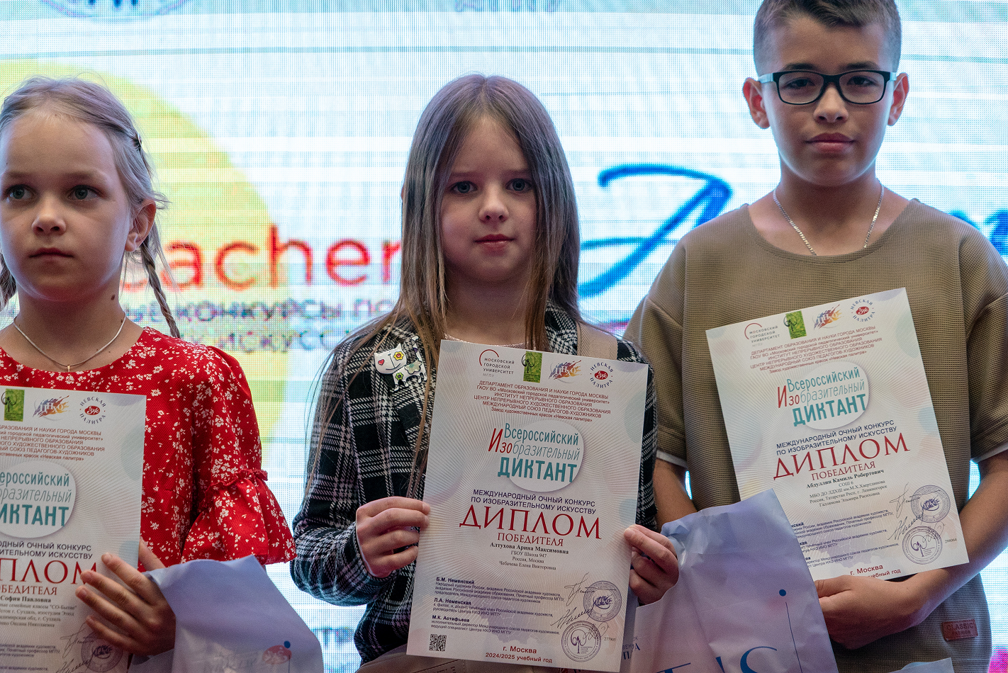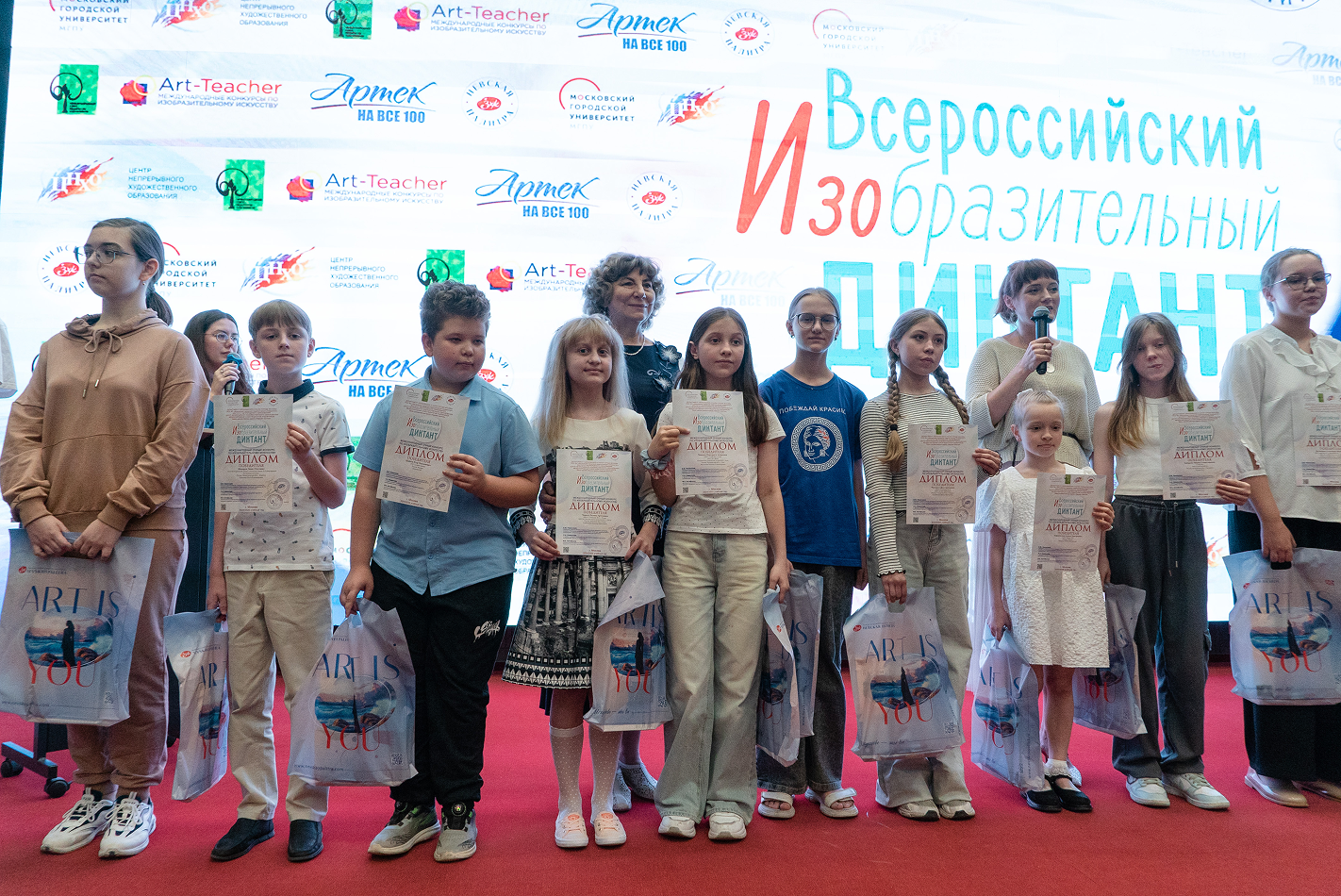 1 июня 2025 года в Московском городском педагогическом университете состоялась торжественная церемония награждения победителей Всероссийского изобразительного диктанта «Моя страна — моя история» и Всероссийского конкурса «Через искусство — к жизни». Эти конкурсы, реализуемые центром непрерывного художественного образования МГПУ, являются самыми крупными проектами в сфере художественного образования. В этом году в них приняли участие более 42 тысяч школьников из 86 регионов России и нескольких зарубежных стран.